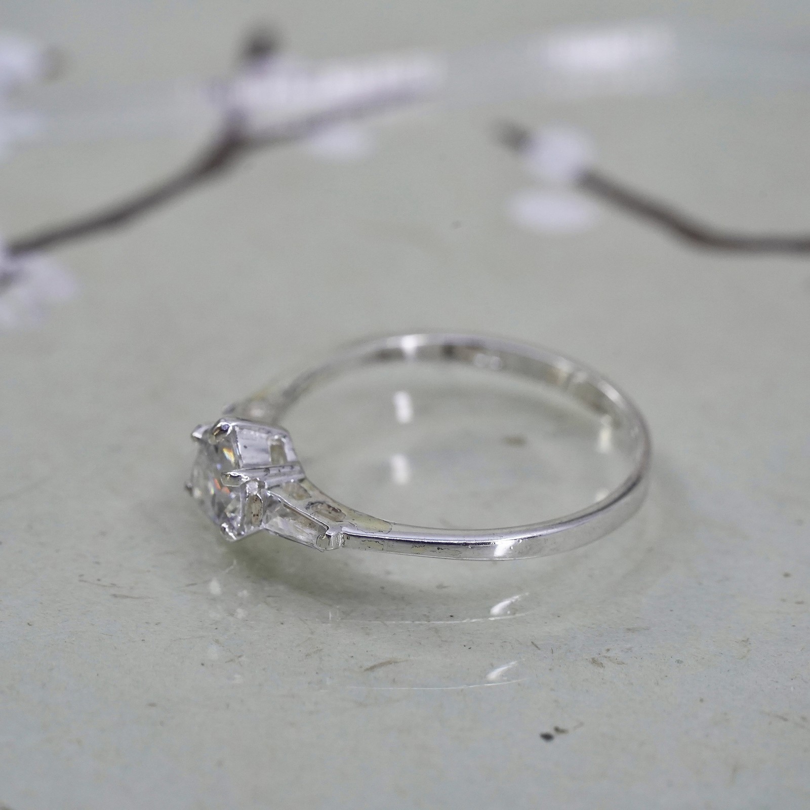 как выглядит Size 9.25, Vintage sterling silver handmade ring, engagement ring with heart cz фото