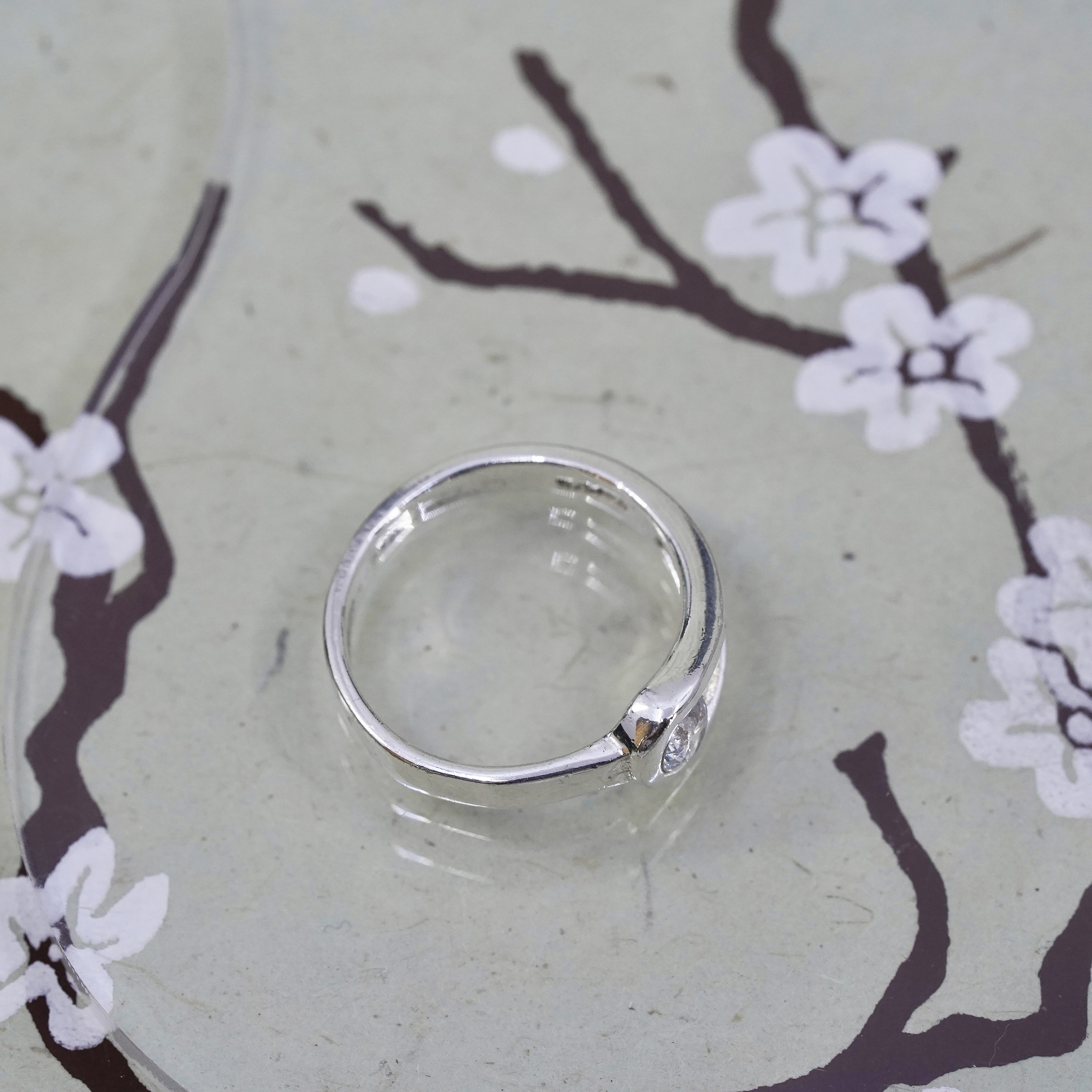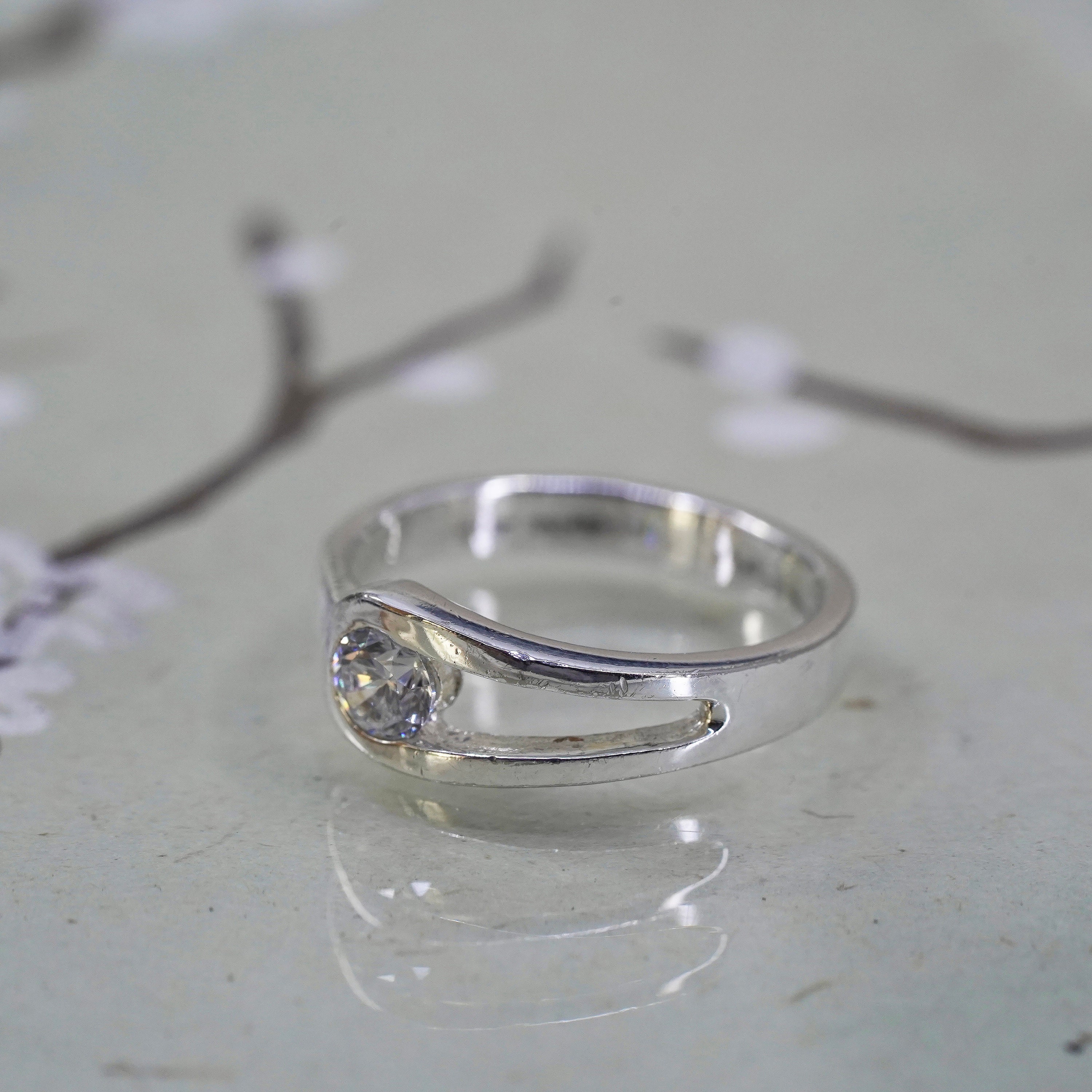 как выглядит Size 8, Vintage sterling silver handmade ring, engagement ring with cz фото