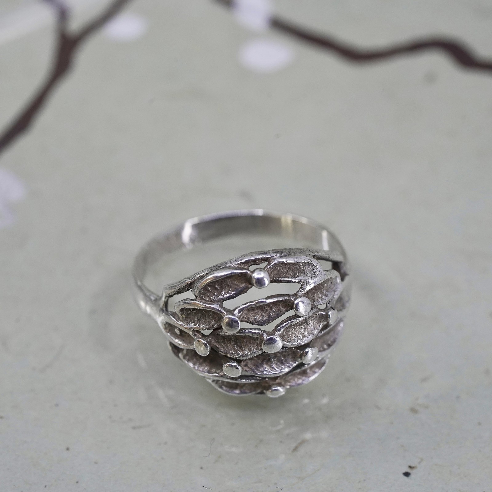 как выглядит Size 6.5 vintage Sterling silver handmade ring, 925 beads band фото