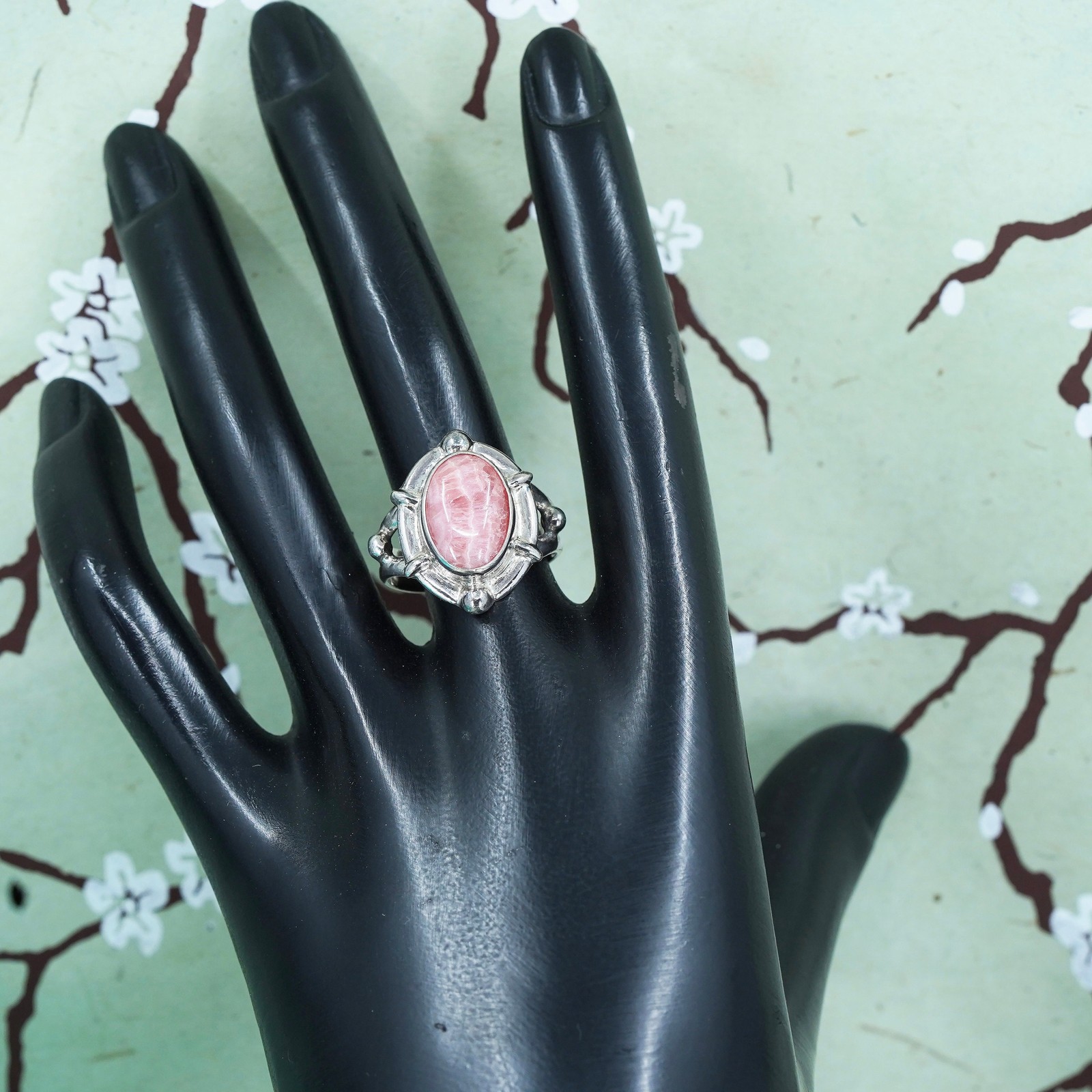 как выглядит Size 9, sterling silver ring, handmade filigree 925 ring w/ pink Rhodochrosite фото
