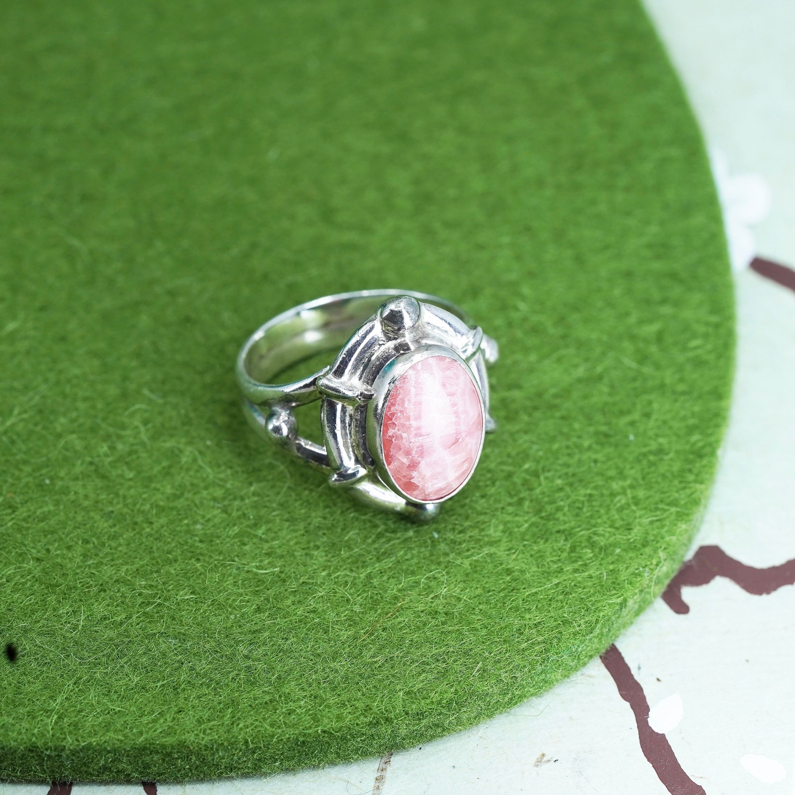 Size 9, sterling silver ring, handmade filigree 925 ring w/ pink Rhodochrosite