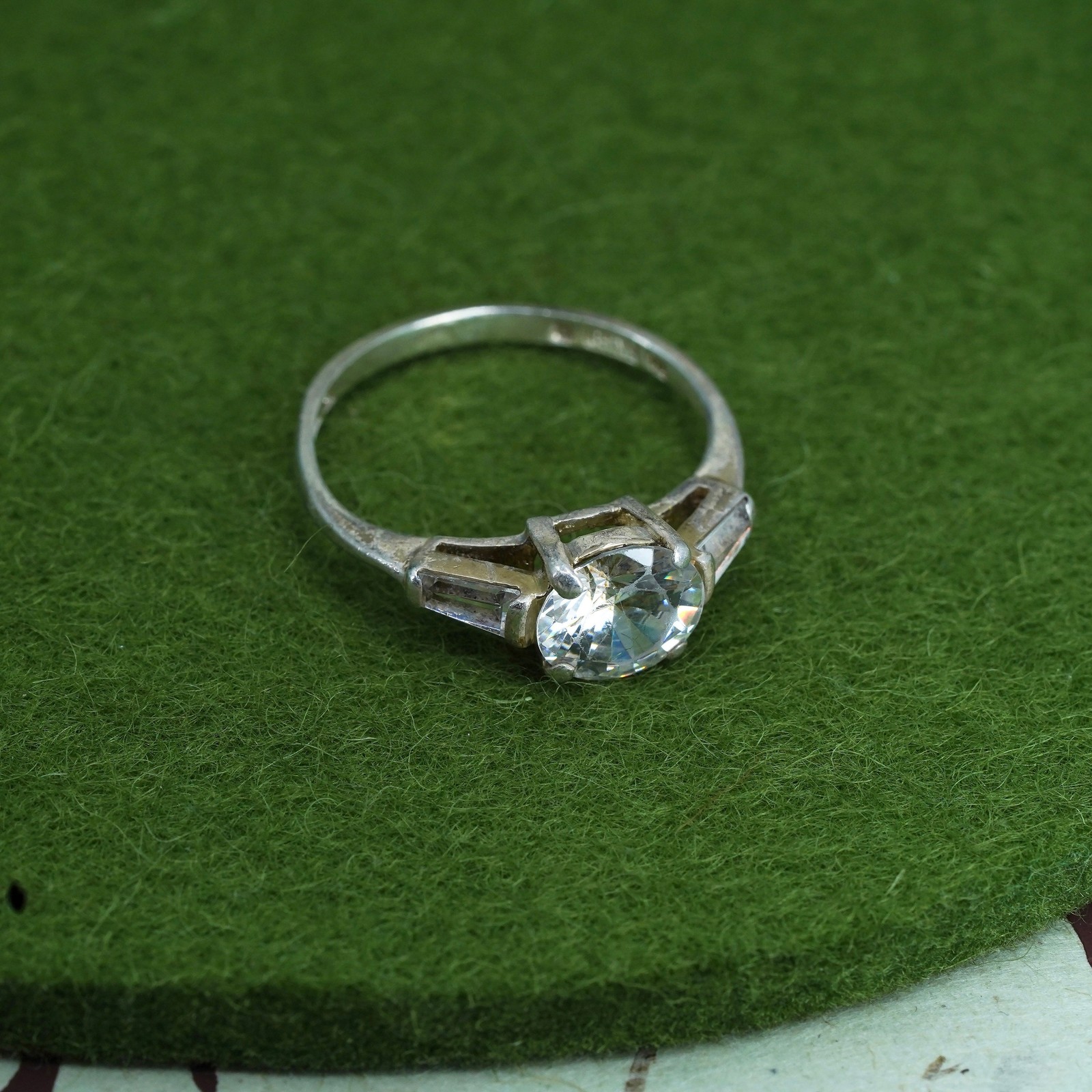 как выглядит Size 8, vintage Sterling 925 silver engagement ring with round cut CZ фото