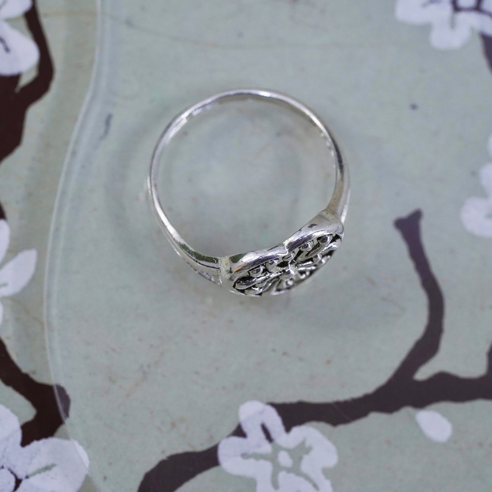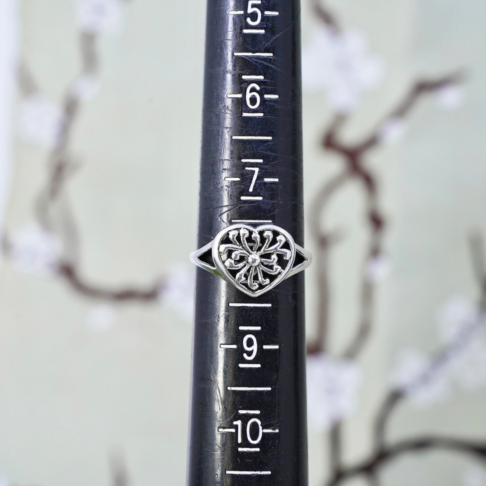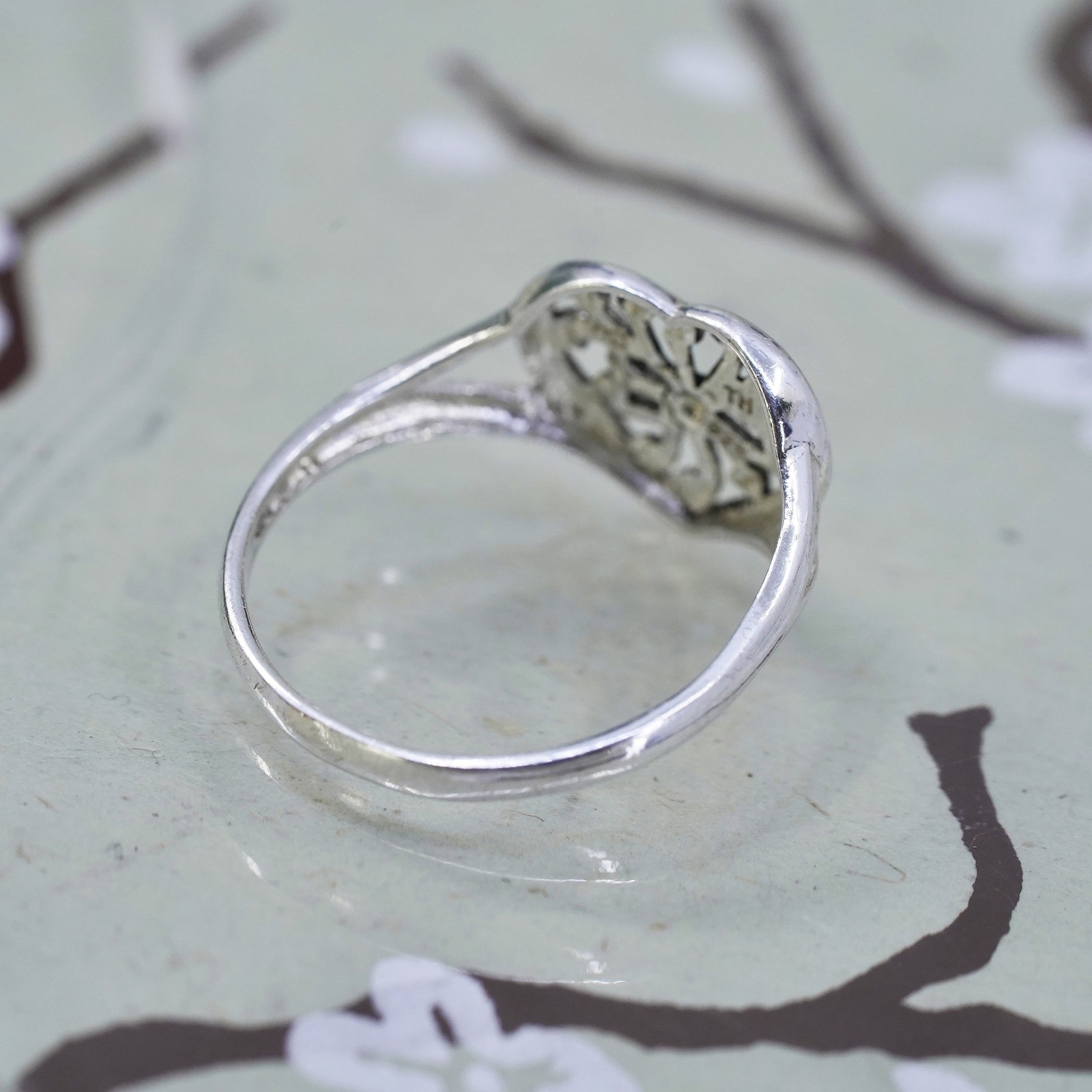 как выглядит Size 7.5, Vintage sterling silver handmade wired ring, 925 filigree heart band фото