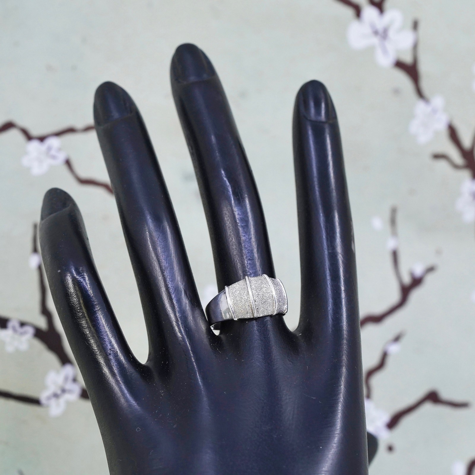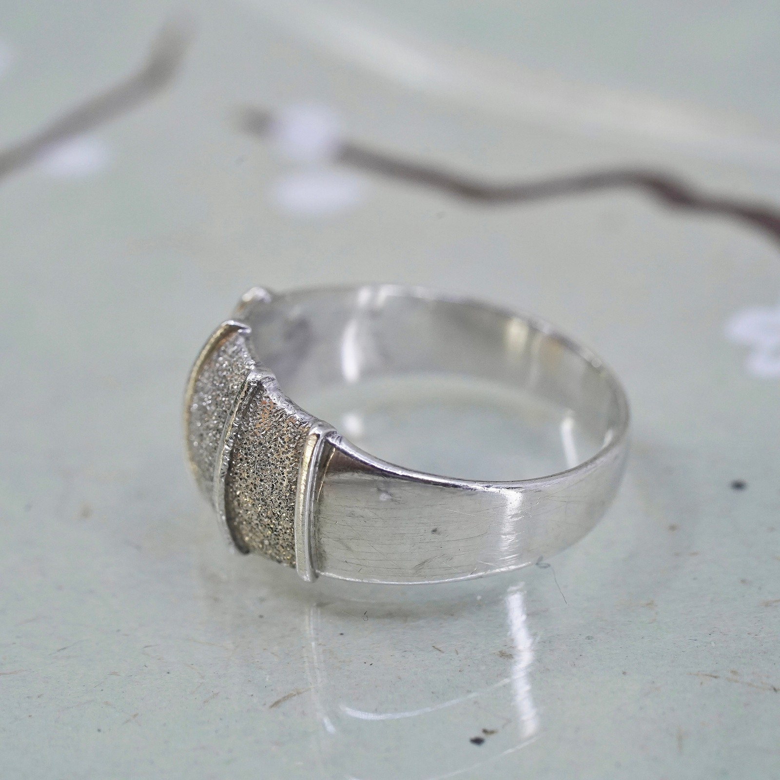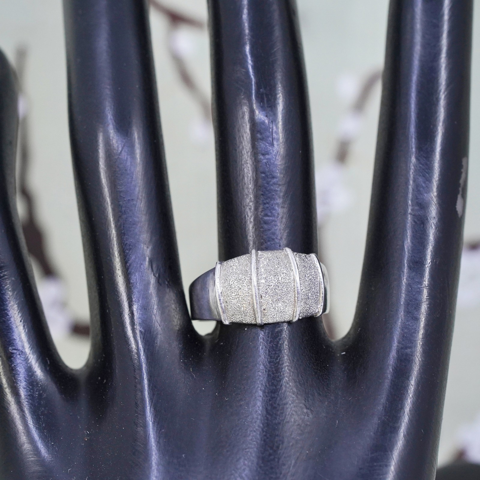 как выглядит Size 8, vintage sterling silver handmade ribbed ring, glittering 925 wide band фото