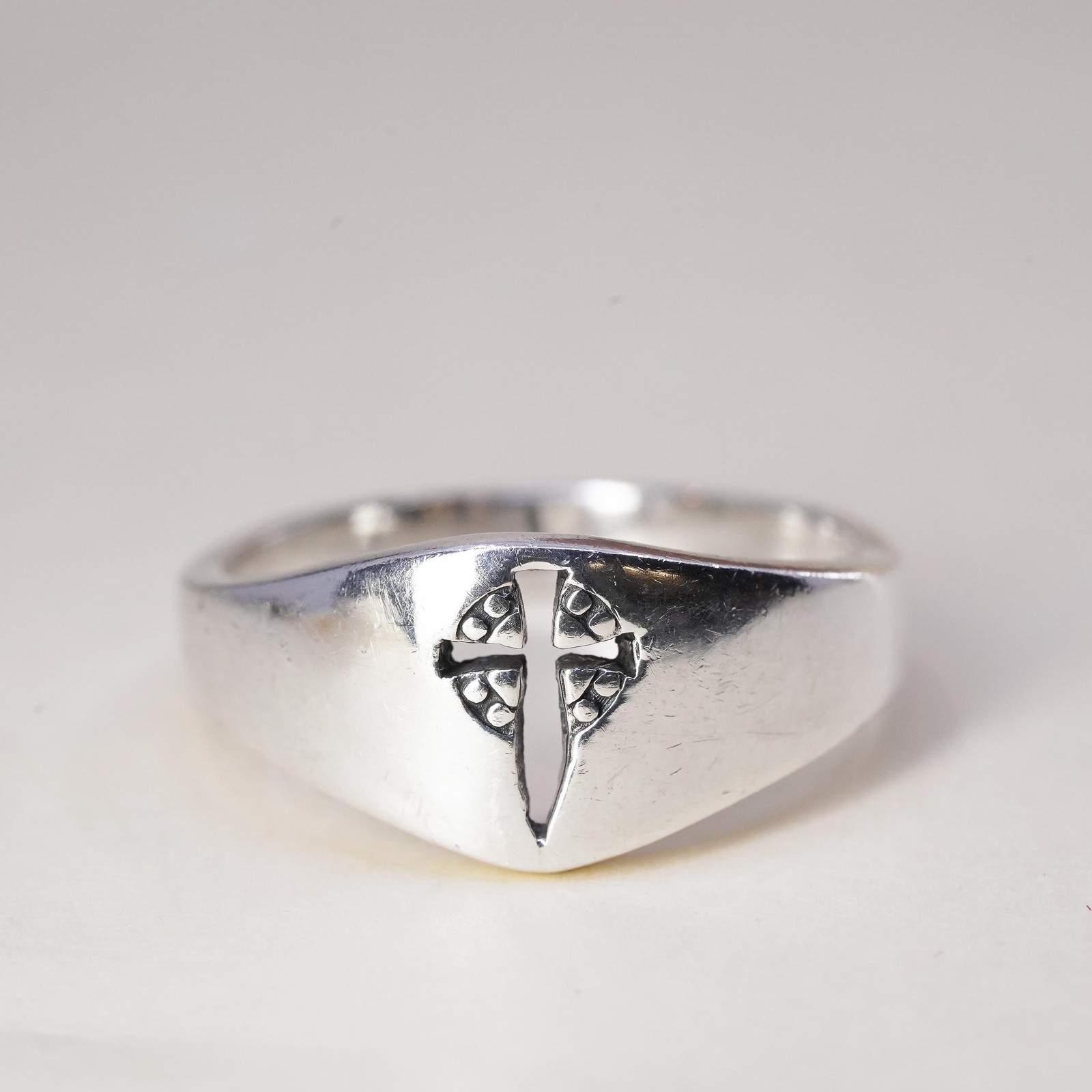 как выглядит Size 12.5, Vintage Sterling silver handmade ring, 925 cross band фото