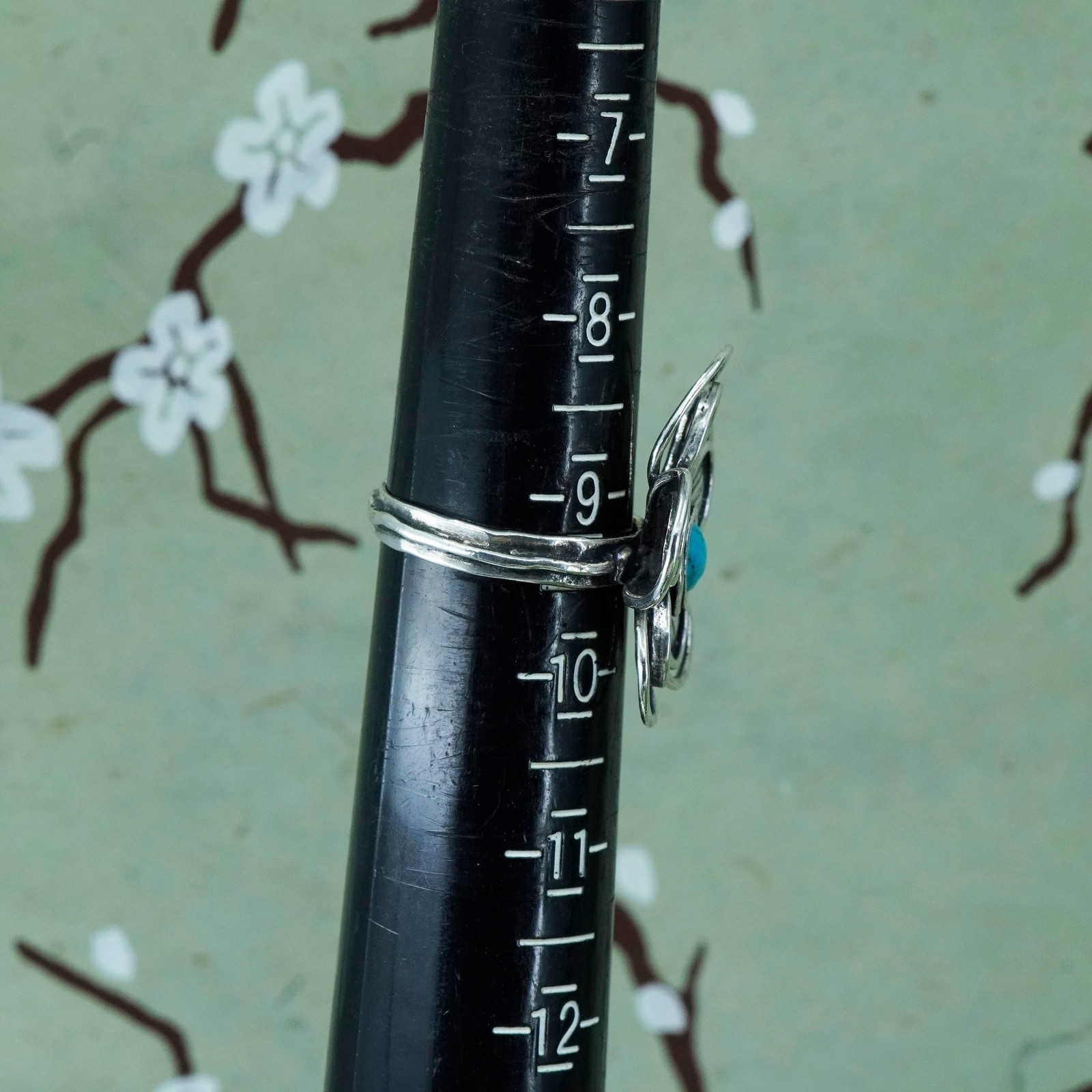 как выглядит Size 9, Israel Sterling silver ring, 925 flower statement ring turquoise фото
