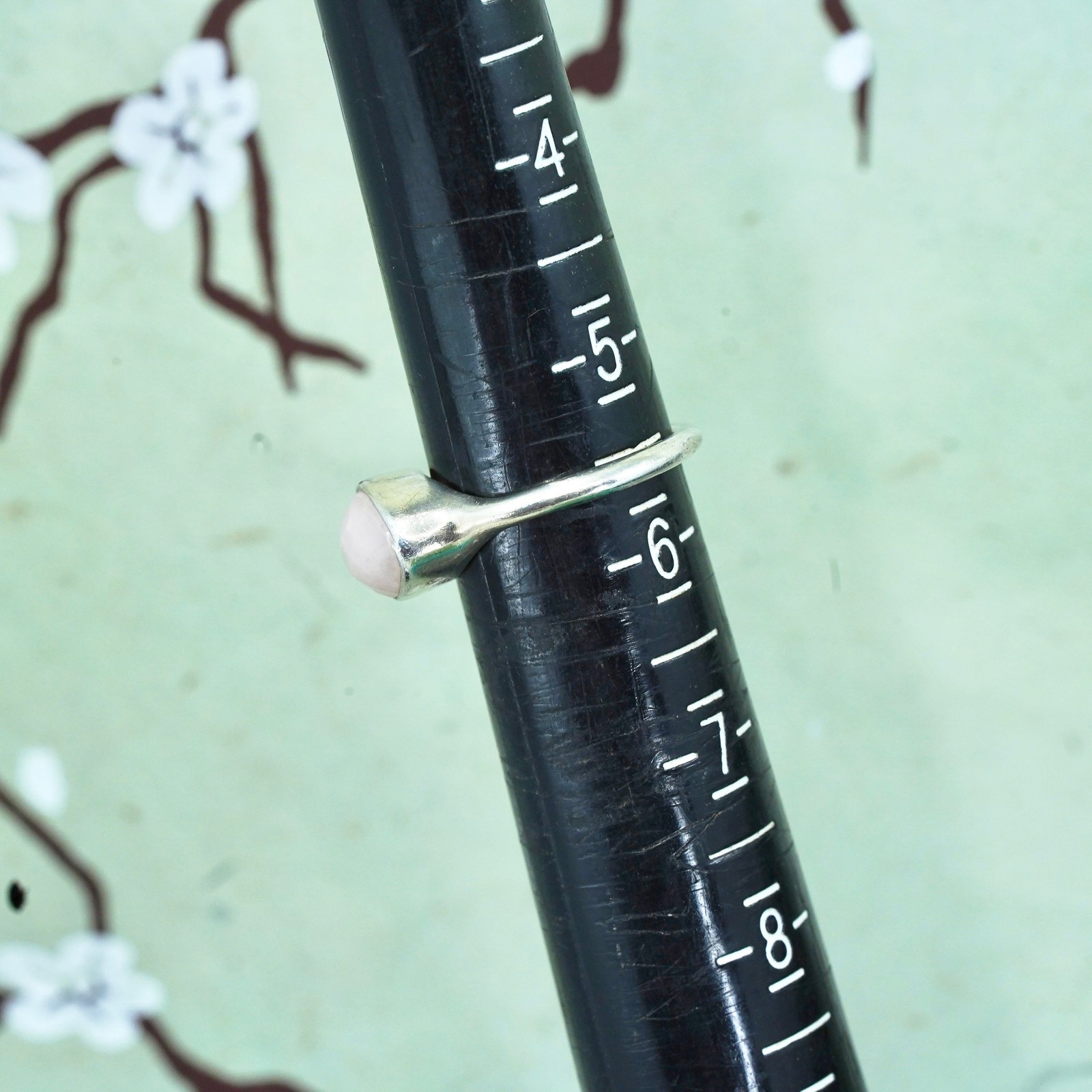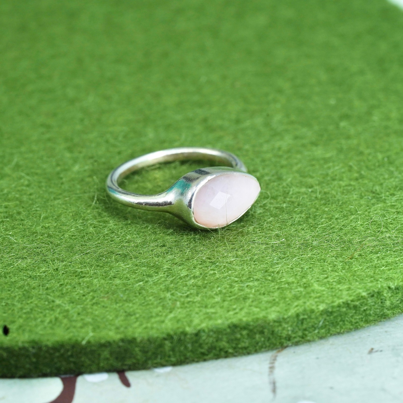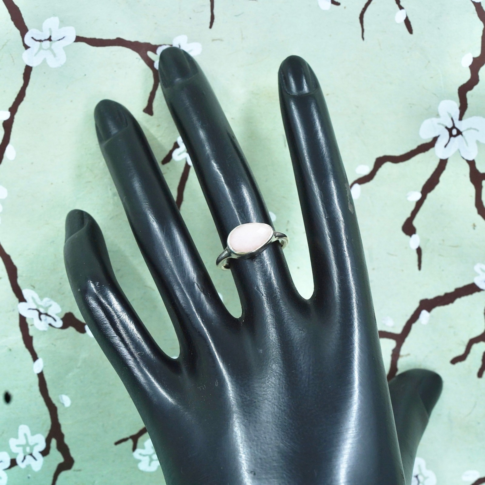 как выглядит Size 5.5, Vintage sterling silver 925 handmade ring with pink rose quartz фото