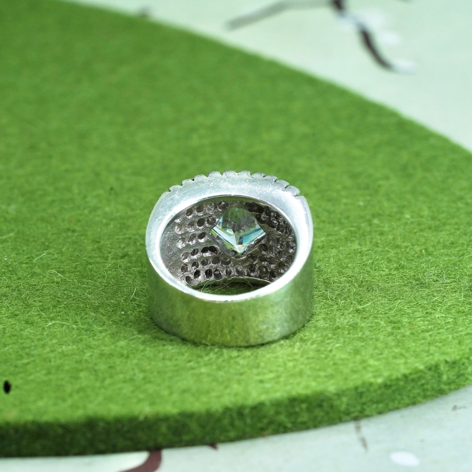 как выглядит Size 8, vintage Sterling 925 silver statement ring with CZ cluster фото
