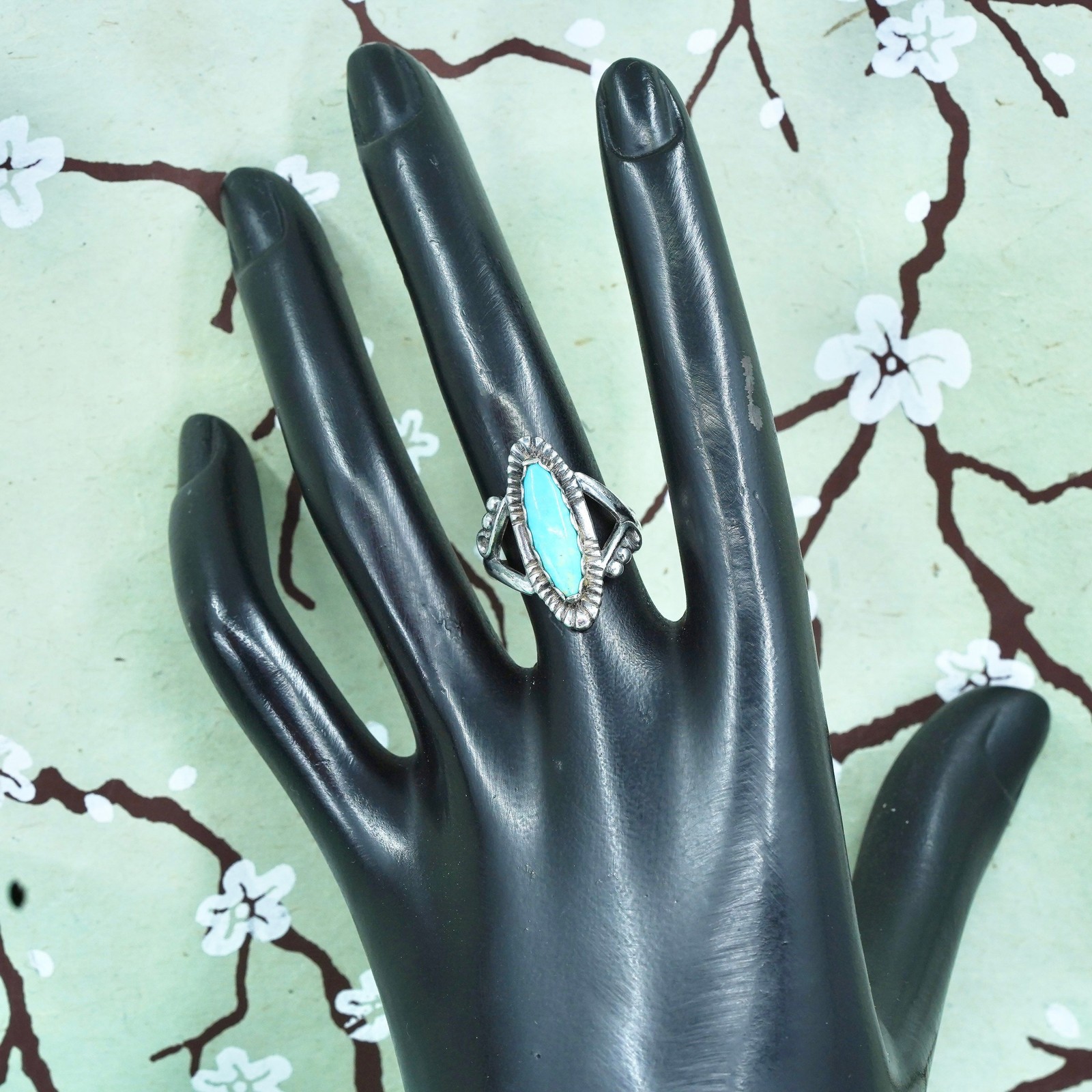 Size 7, Native American sterling silver ring, handmade 925 band with turquoise