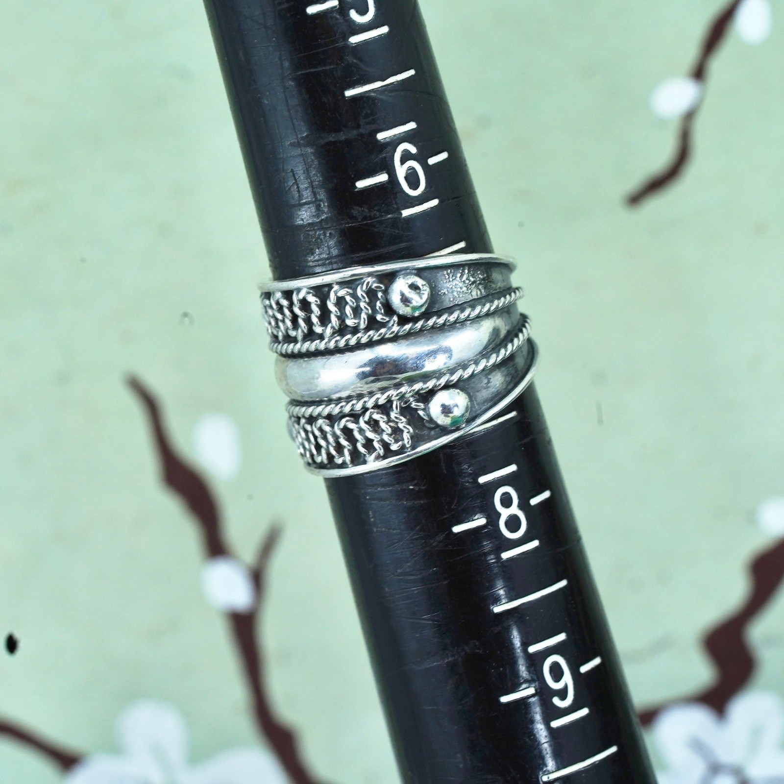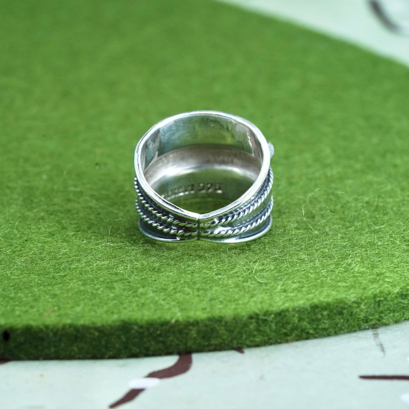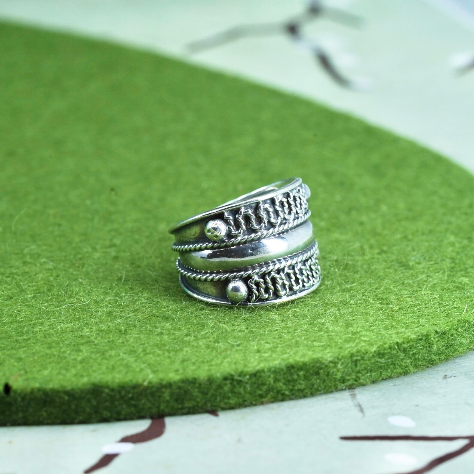 как выглядит Size 6.5, vintage Sterling silver handmade ring, wide 925 textured band фото