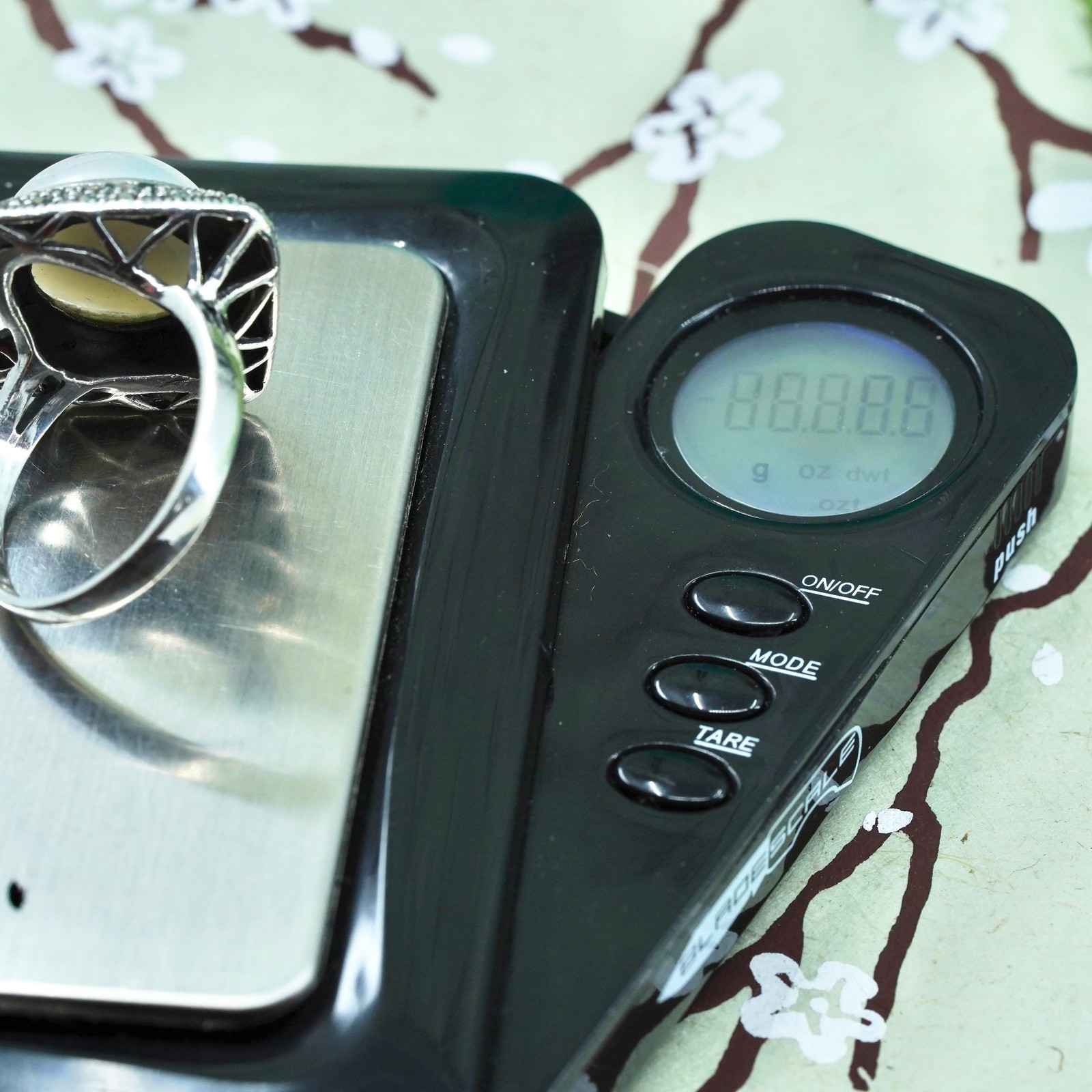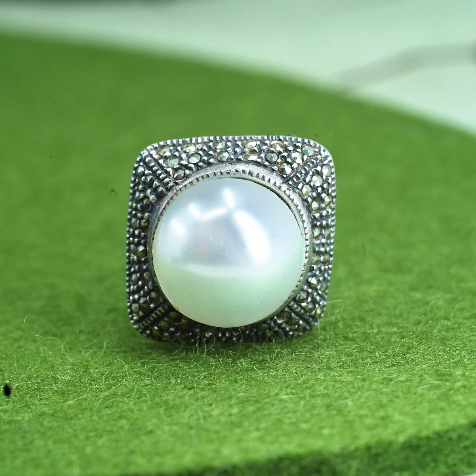 как выглядит Size 11.25, Vintage sterling 925 silver handmade ring with faux pearl marcasite фото