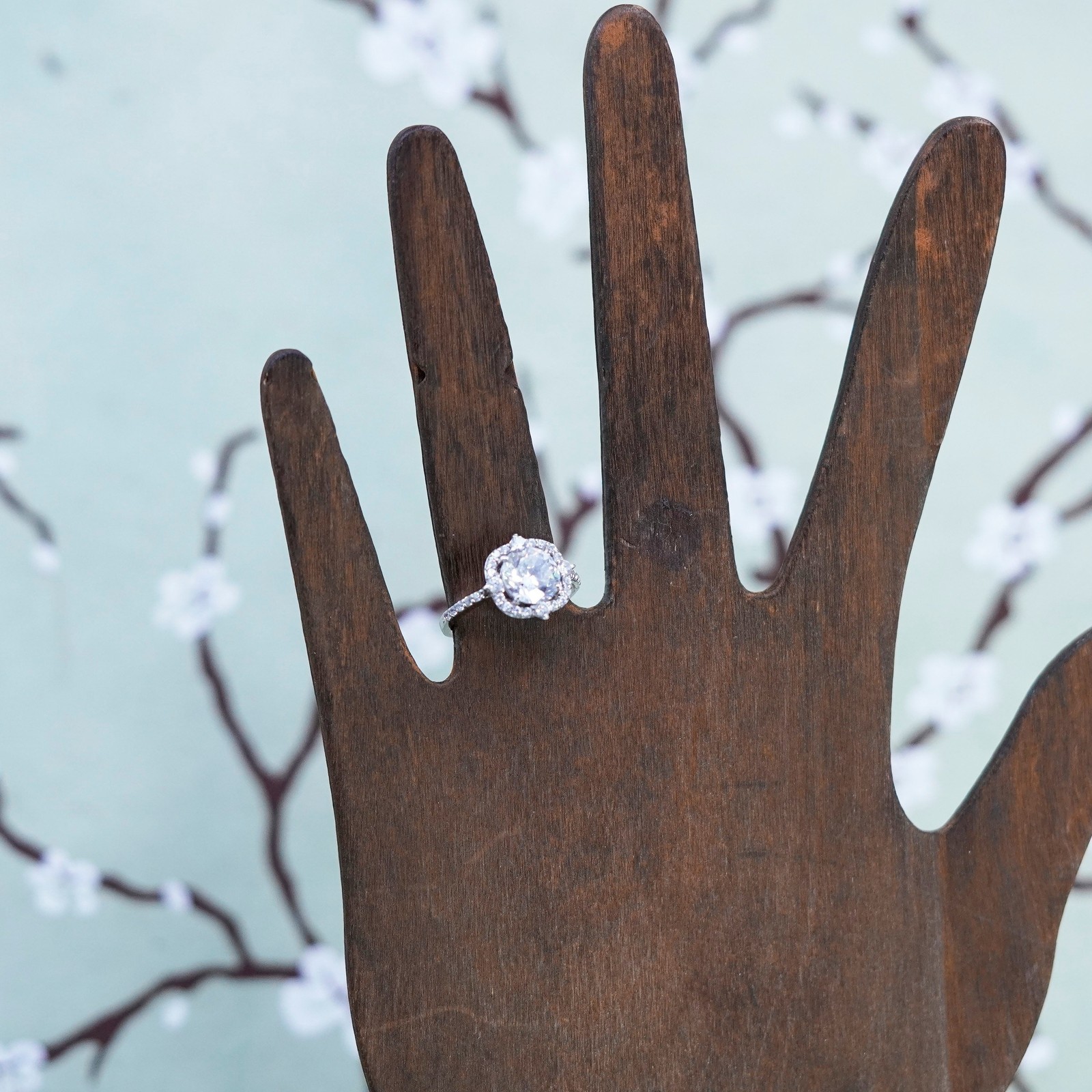 как выглядит Size 5, vintage sterling 925 silver ring with square CZ, engagement band фото