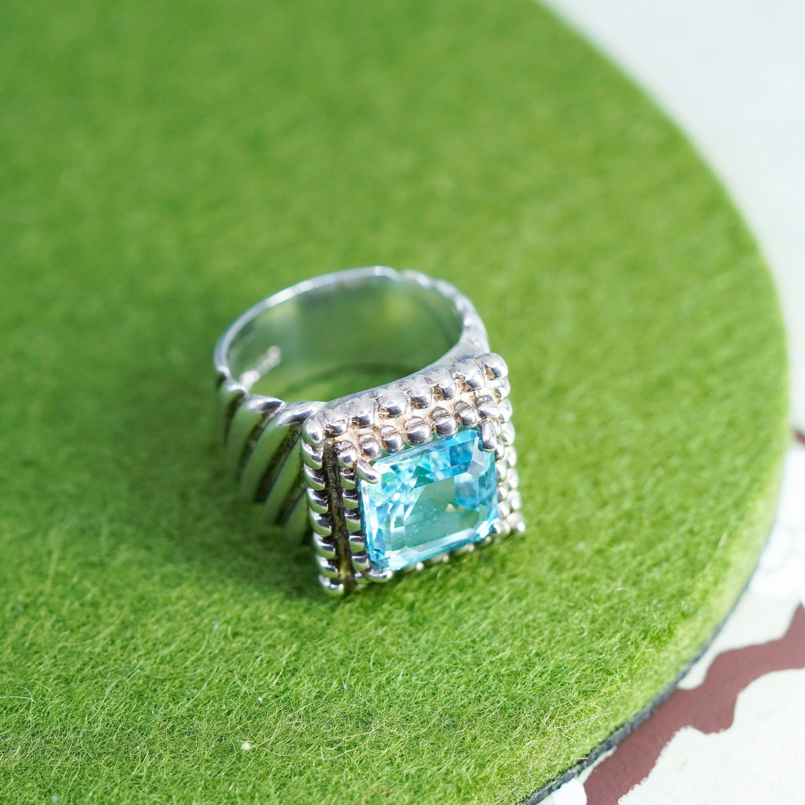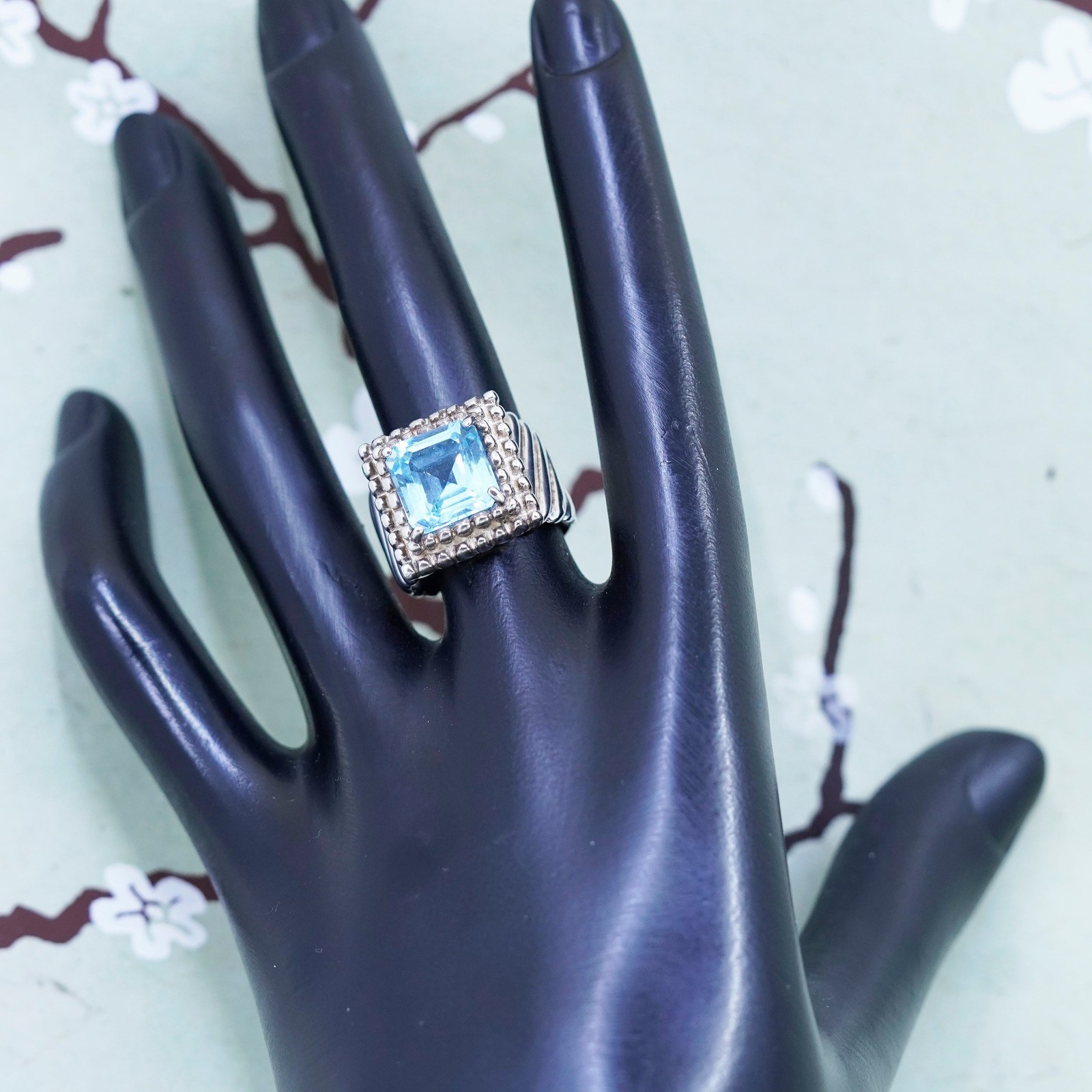 Size 6.5, Sterling silver statement ring, 925 ribbed band w/ square blue topaz