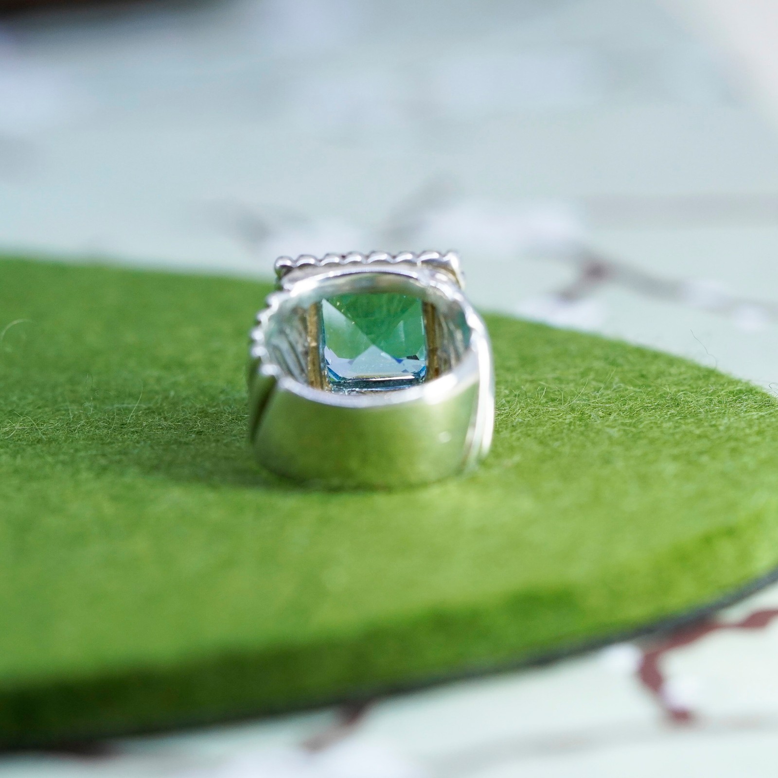 как выглядит Size 6.5, Sterling silver statement ring, 925 ribbed band w/ square blue topaz фото