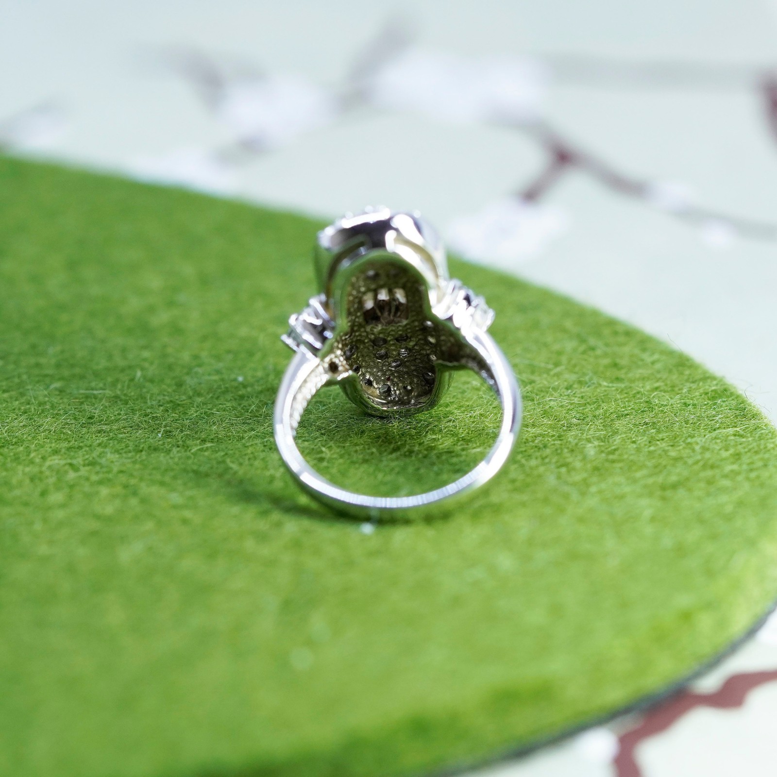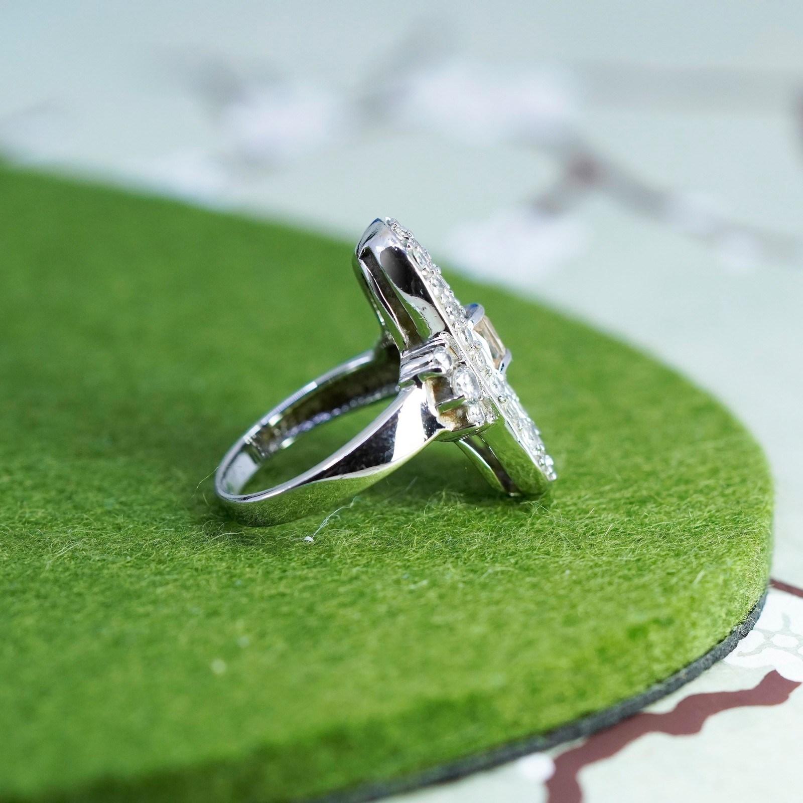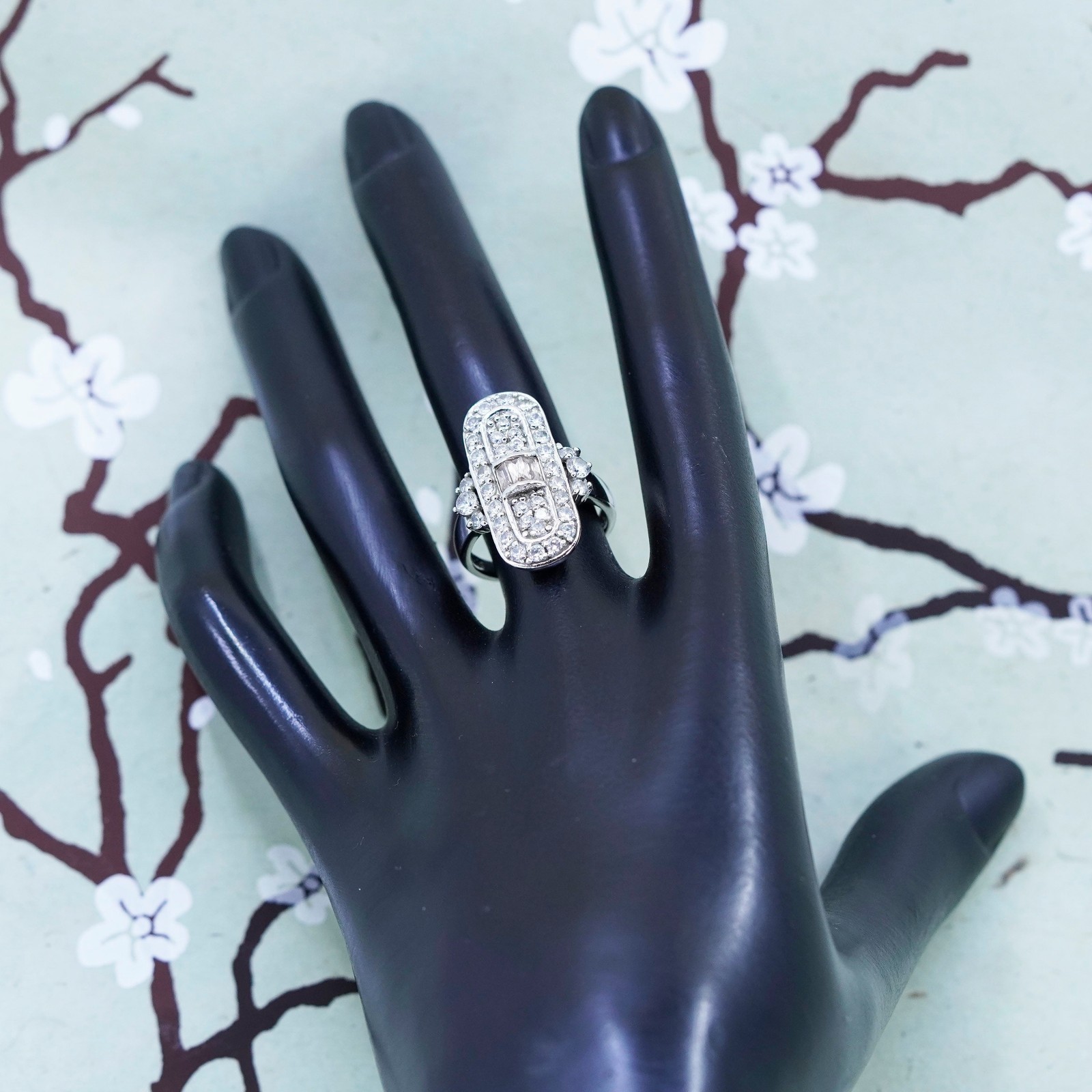 как выглядит Size 7, vintage sterling 925 silver ring with cluster CZ, statement band фото