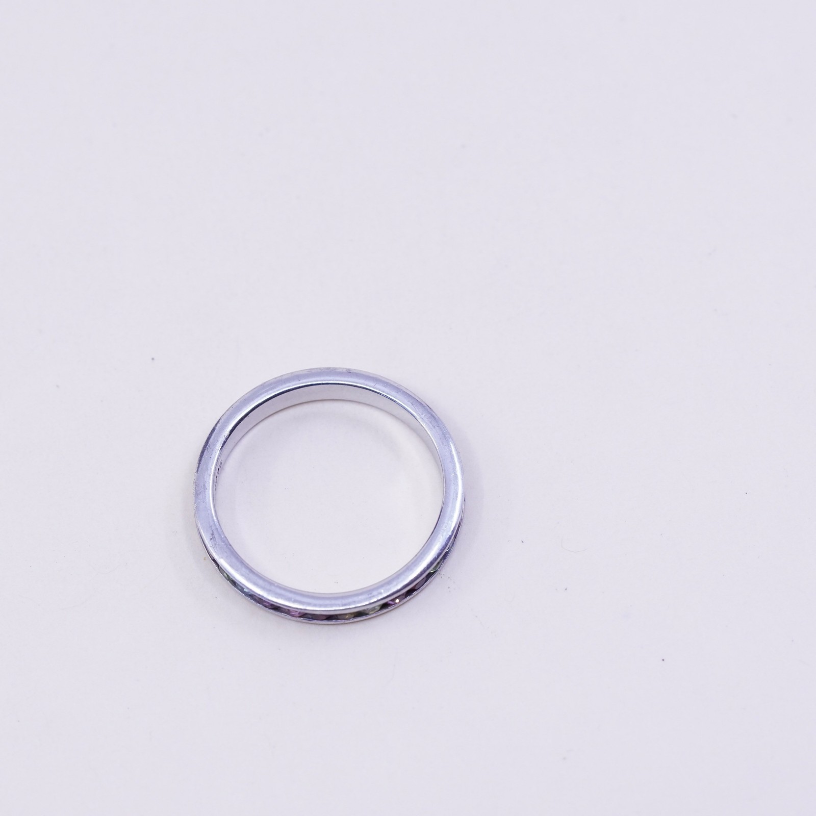 как выглядит Size 8.25, Sterling 925 silver stackable ring, wedding band with colorful CZ фото