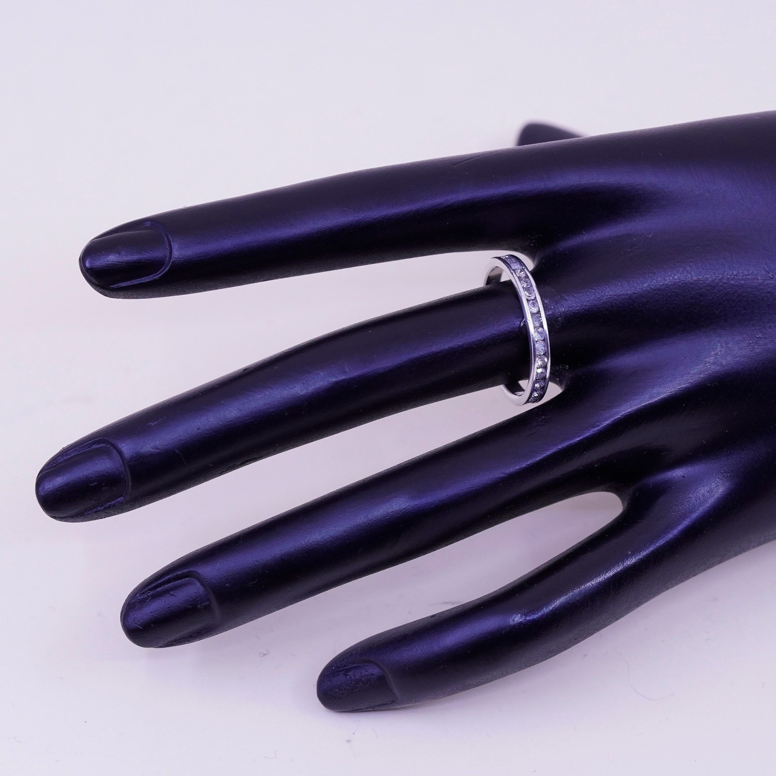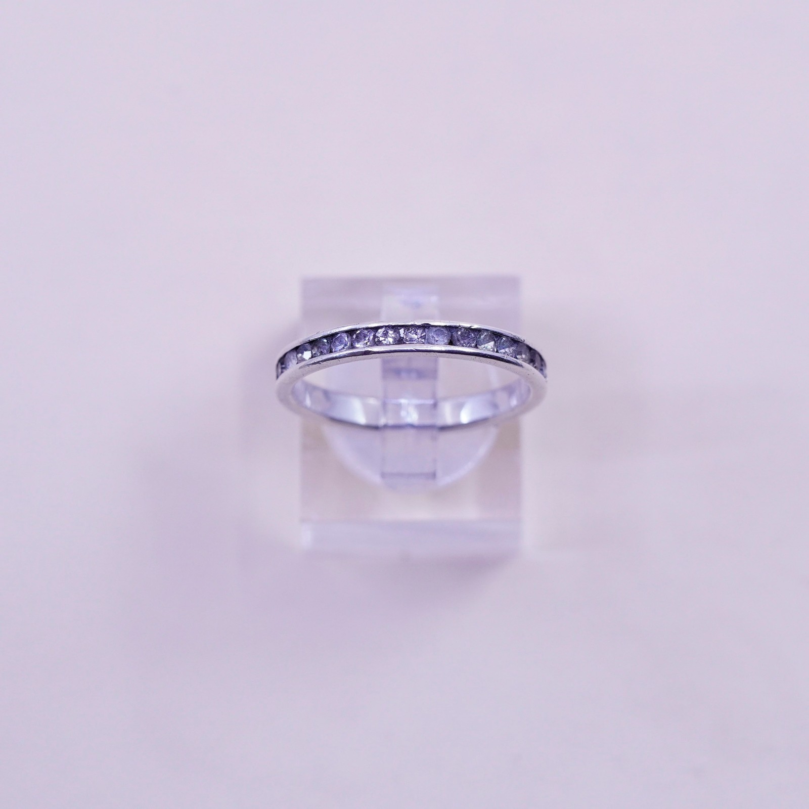 как выглядит Size 8.5, Vintage sterling 925 silver handmade ring, engagement band with cz фото