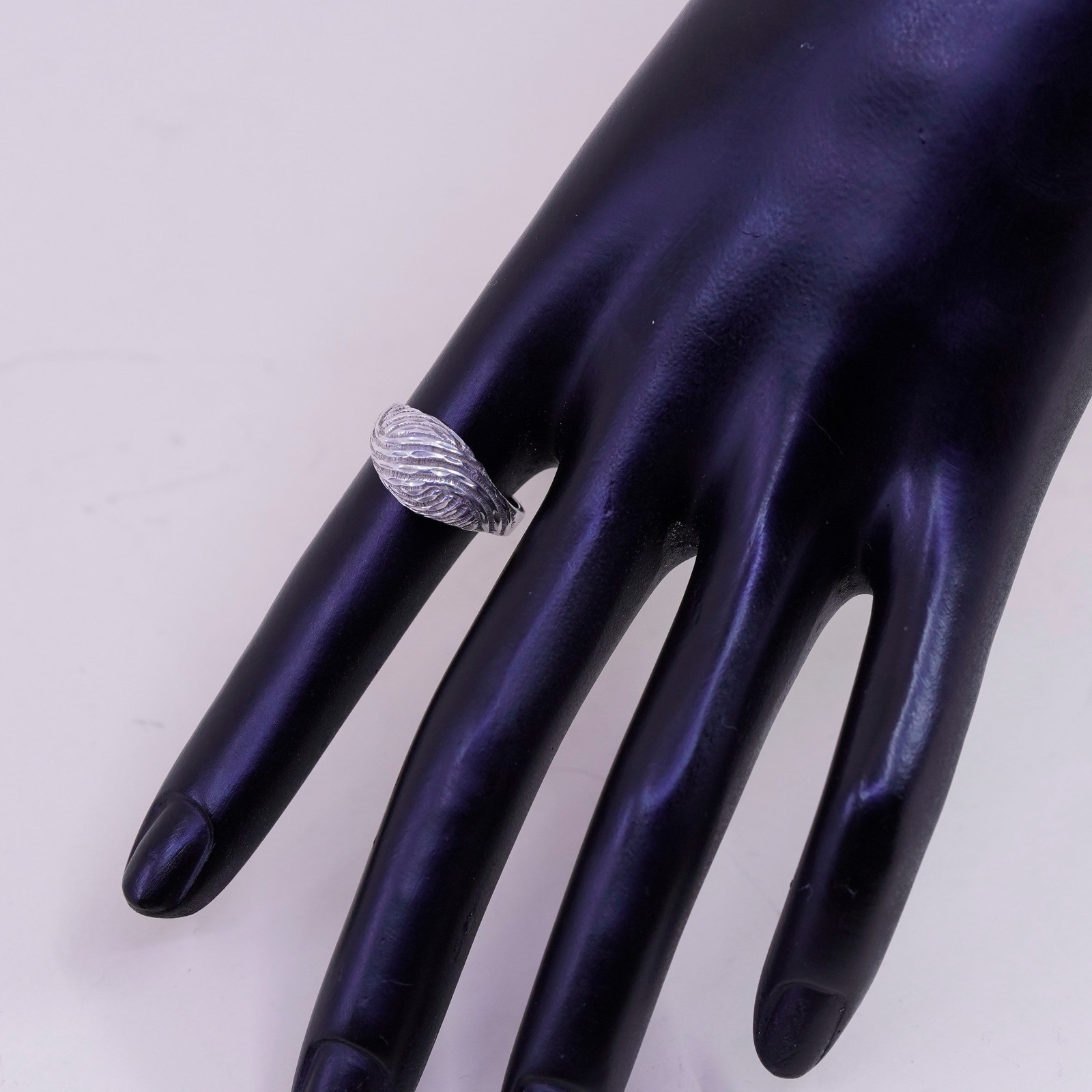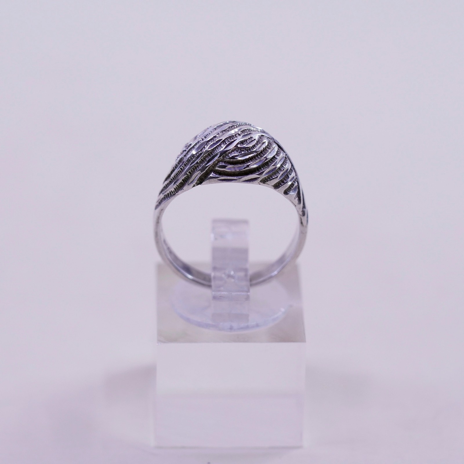 как выглядит Size 6.5, sterling silver handmade ring, Mexico textured 925 ribbed wavy band фото