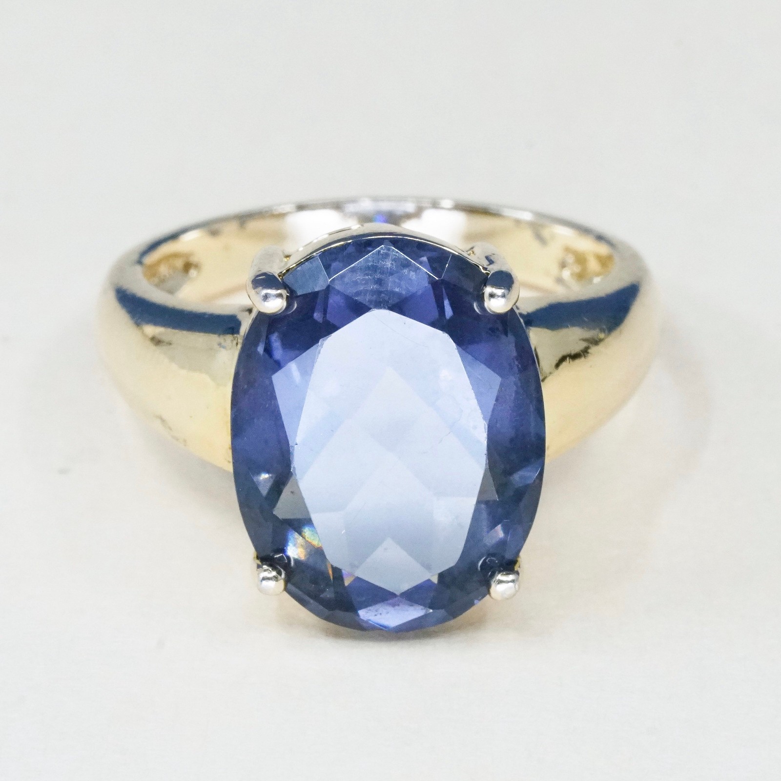 sz 7.75, vermeil gold over Sterling 925 silver statement ring w/ oval cut topaz