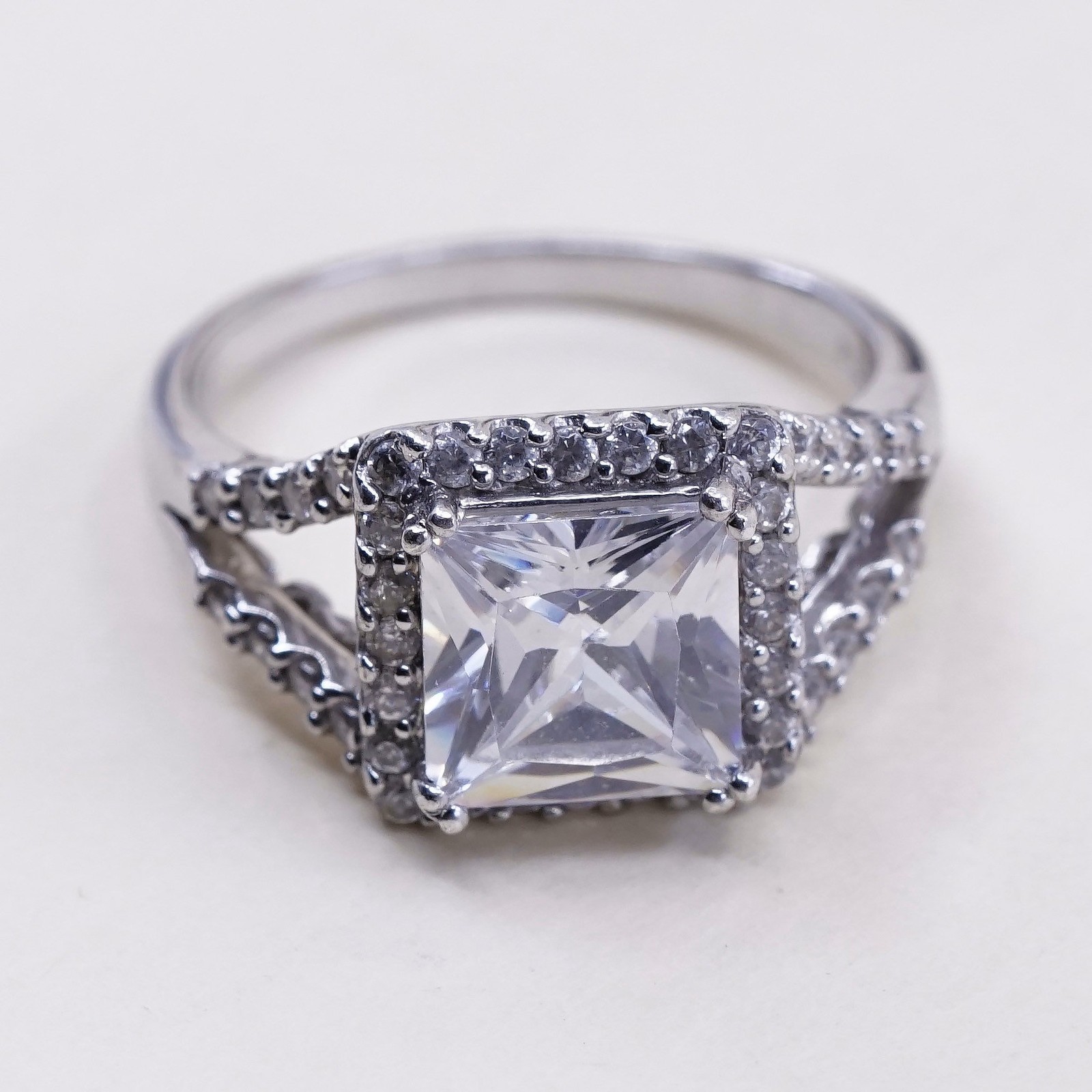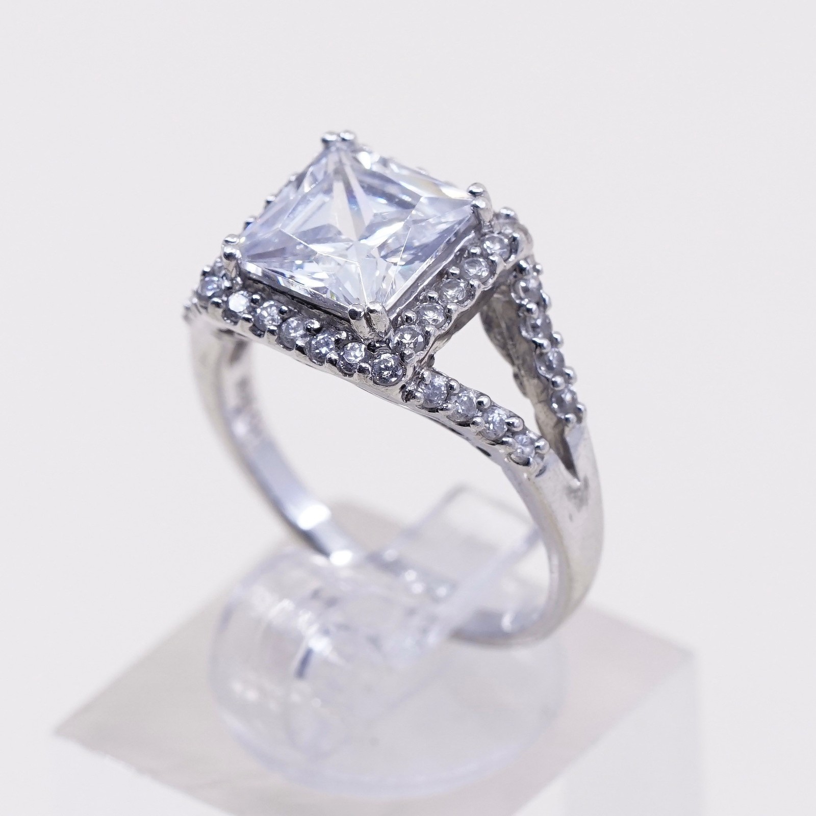 как выглядит Size 7, vintage PGDA Sterling 925 silver with cz engagement ring фото
