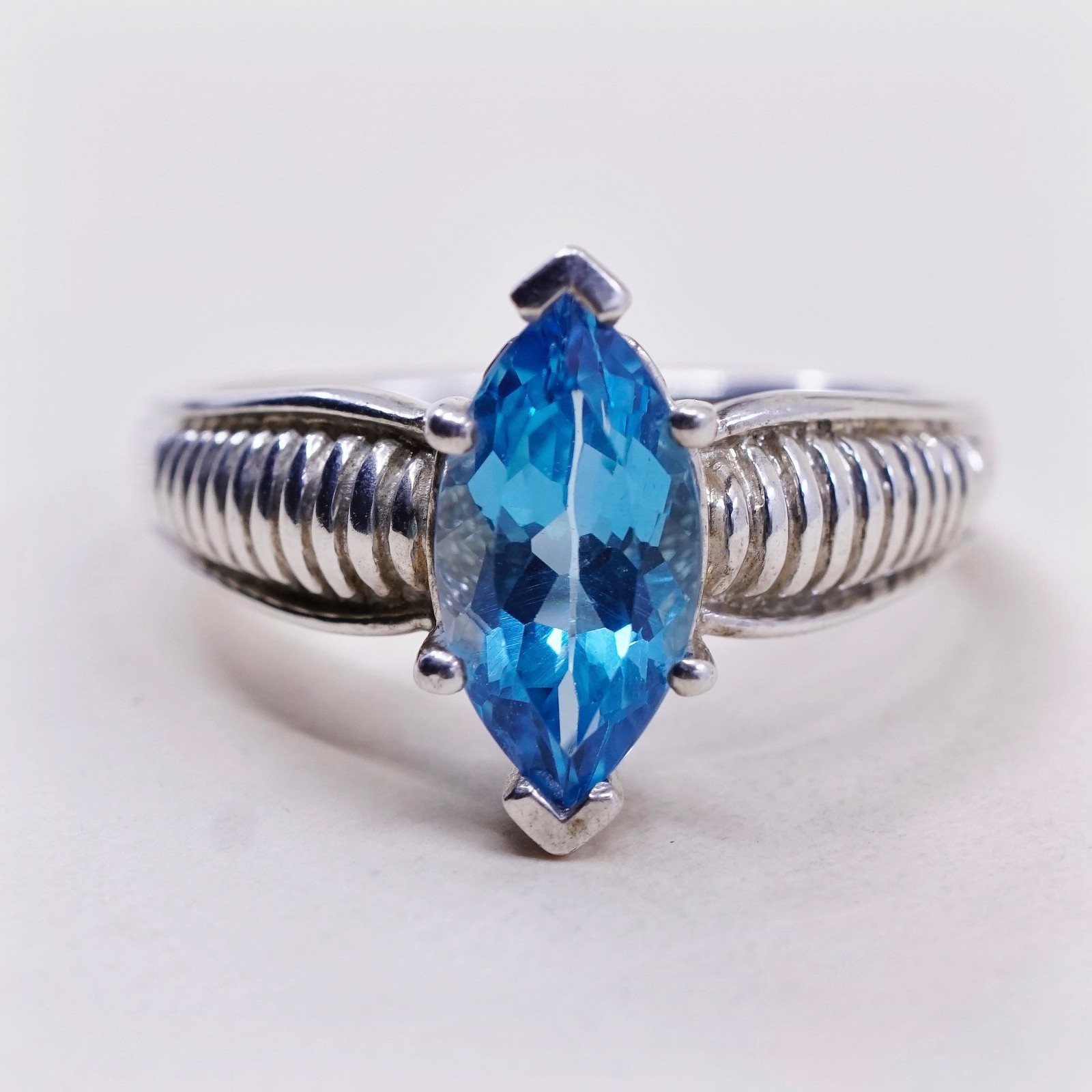 как выглядит sz 10, vtg Sterling silver statement ring, engagement ring, 925 with blue topaz фото