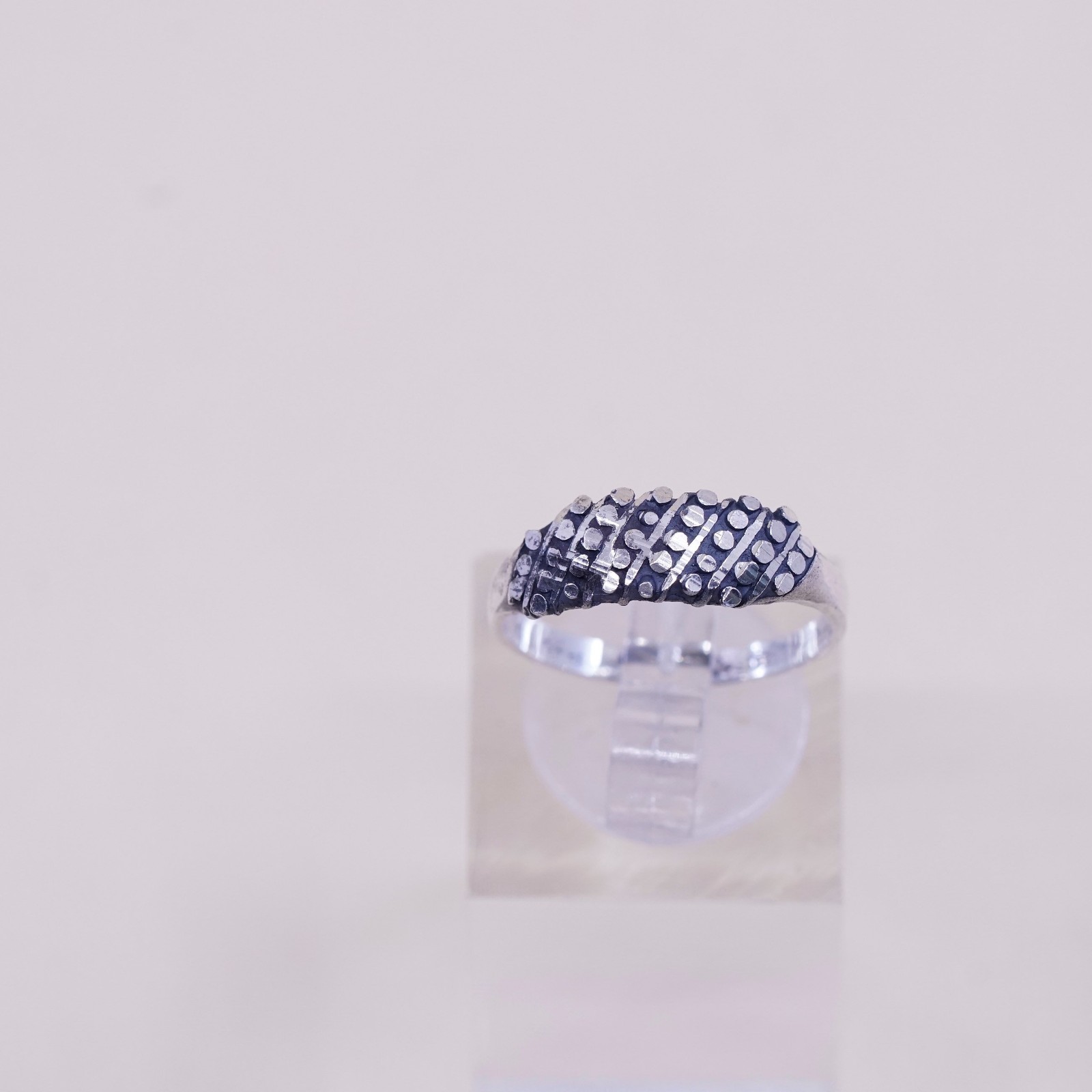 Size 7, vintage Sterling silver handmade ring, 925 beads band