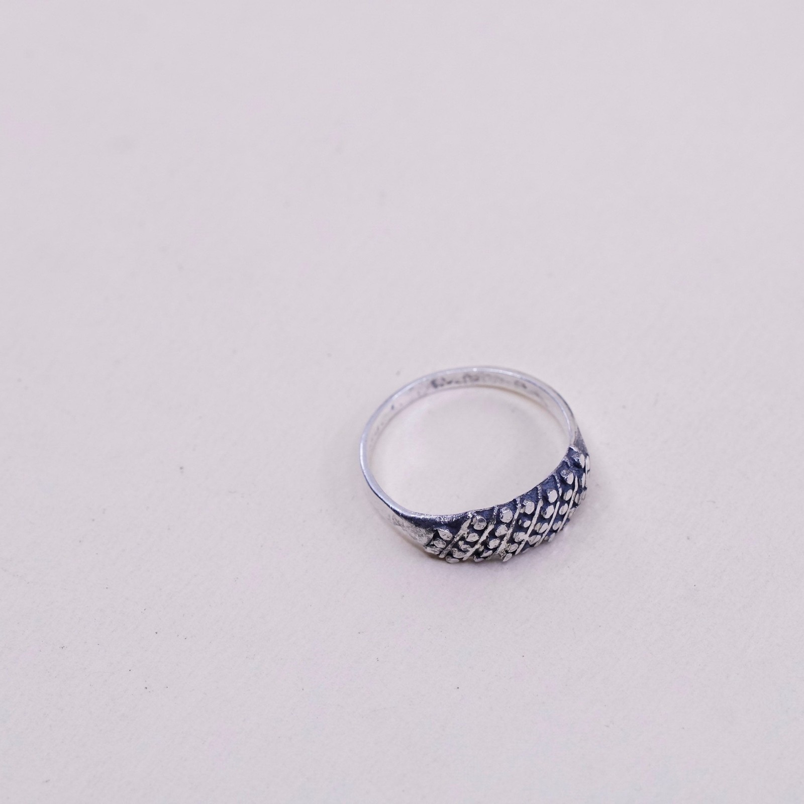 как выглядит Size 7, vintage Sterling silver handmade ring, 925 beads band фото
