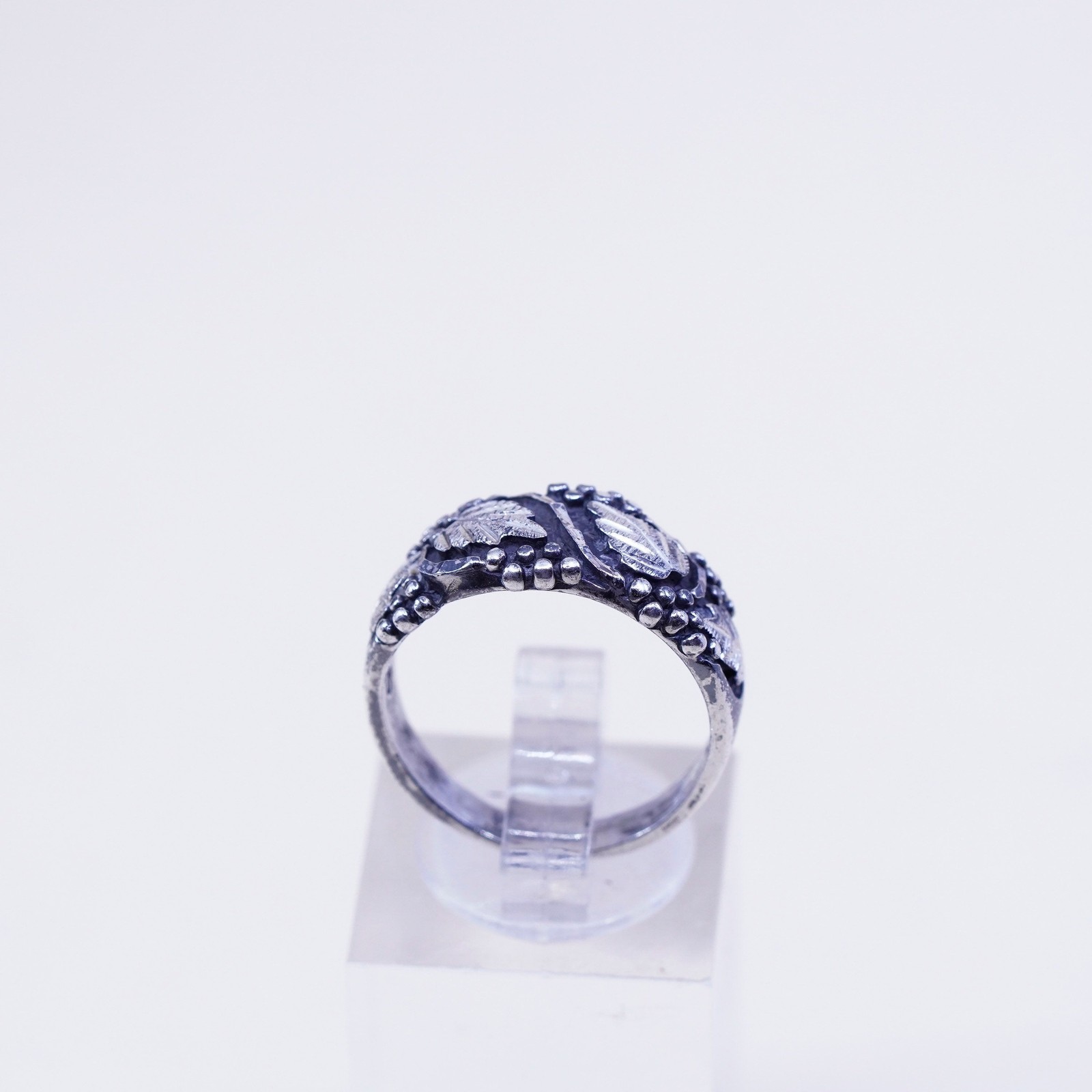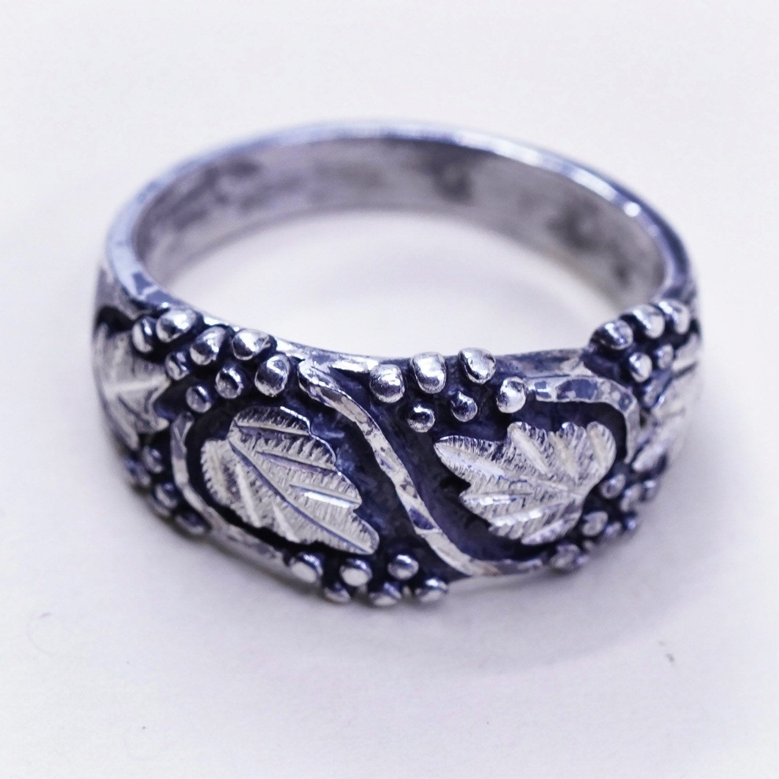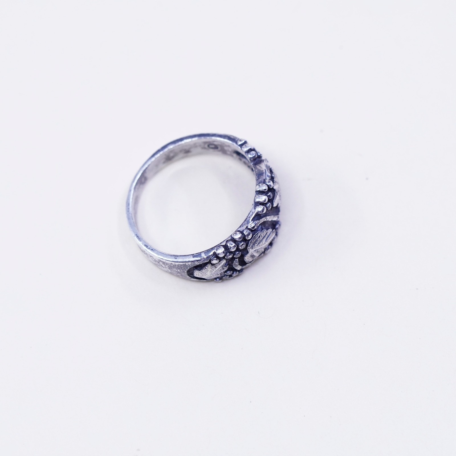 Size 7.25, Wheeler jewelry Sterling silver ring, 925 band w/ grape vine leaves
