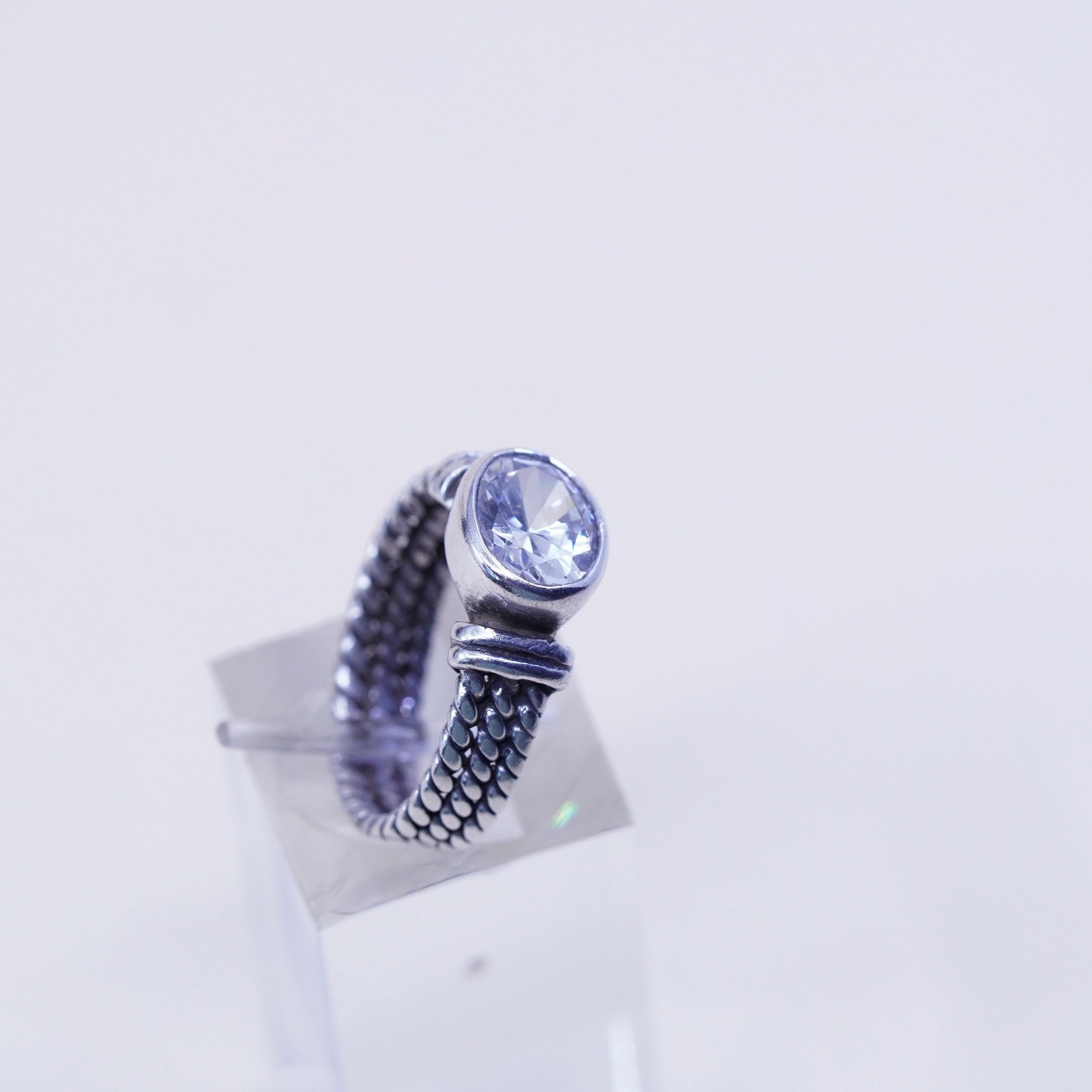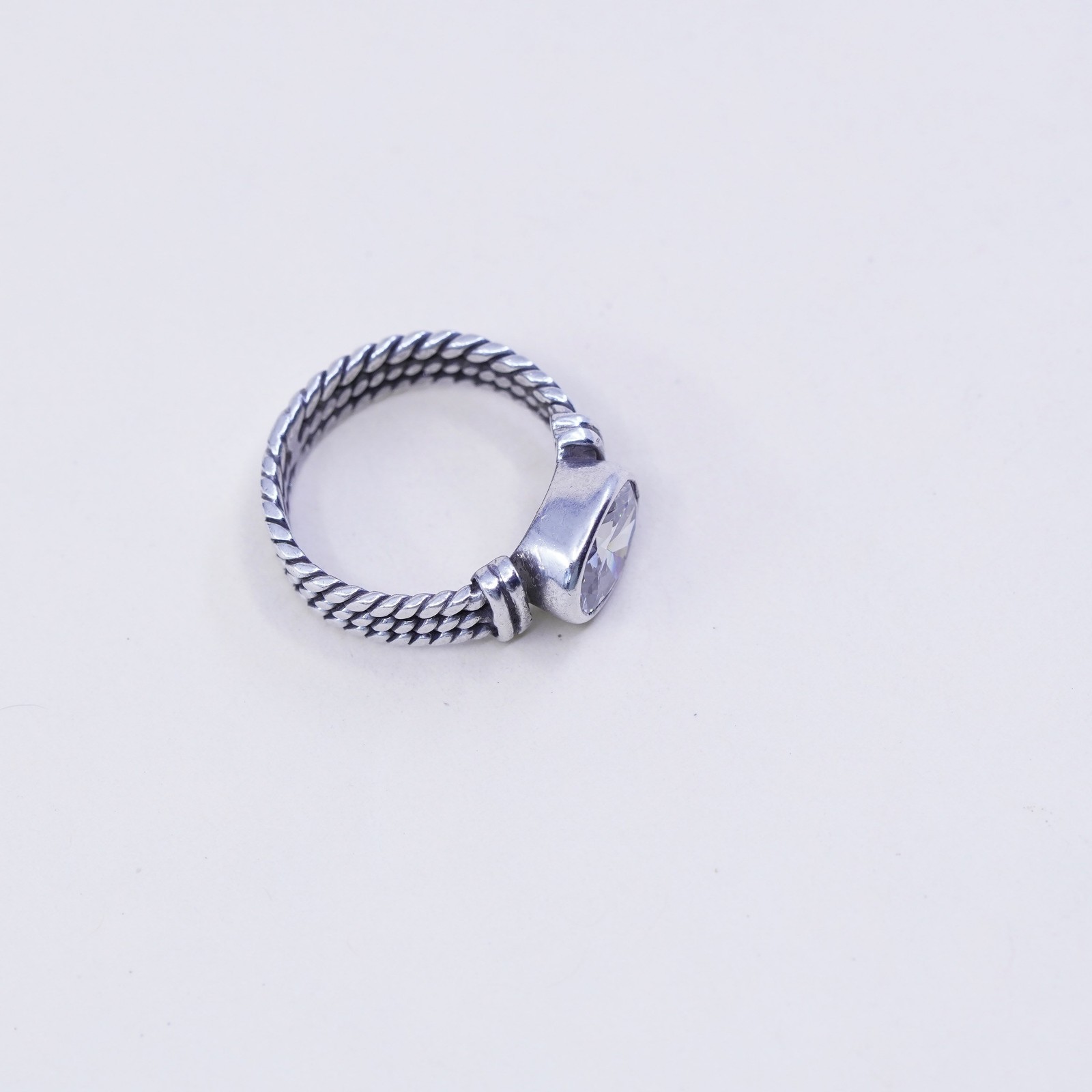 как выглядит Size 6, Vintage sterling silver handmade ring, engagement ring with cz фото