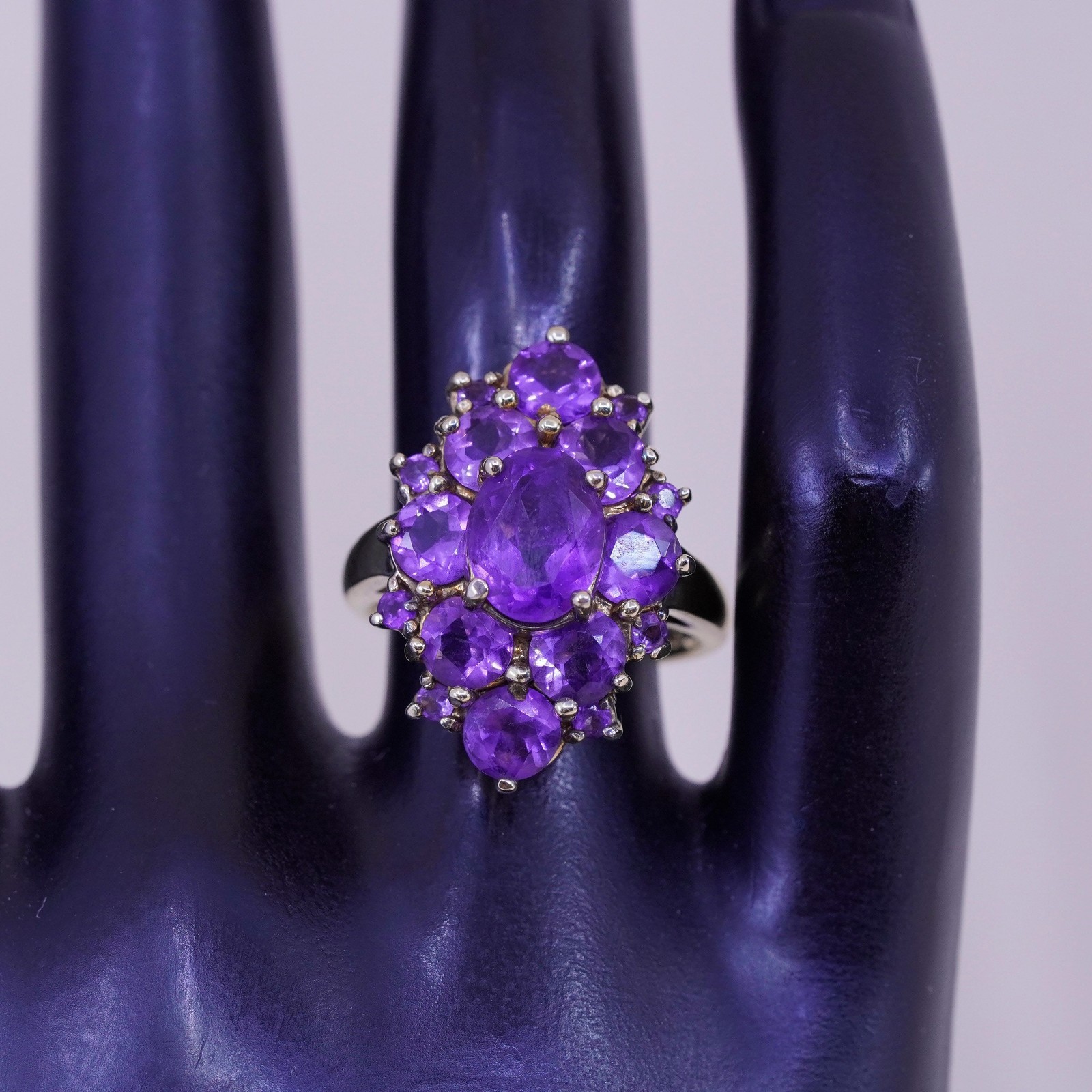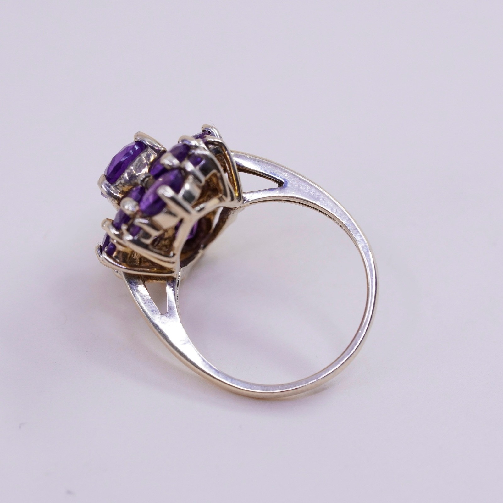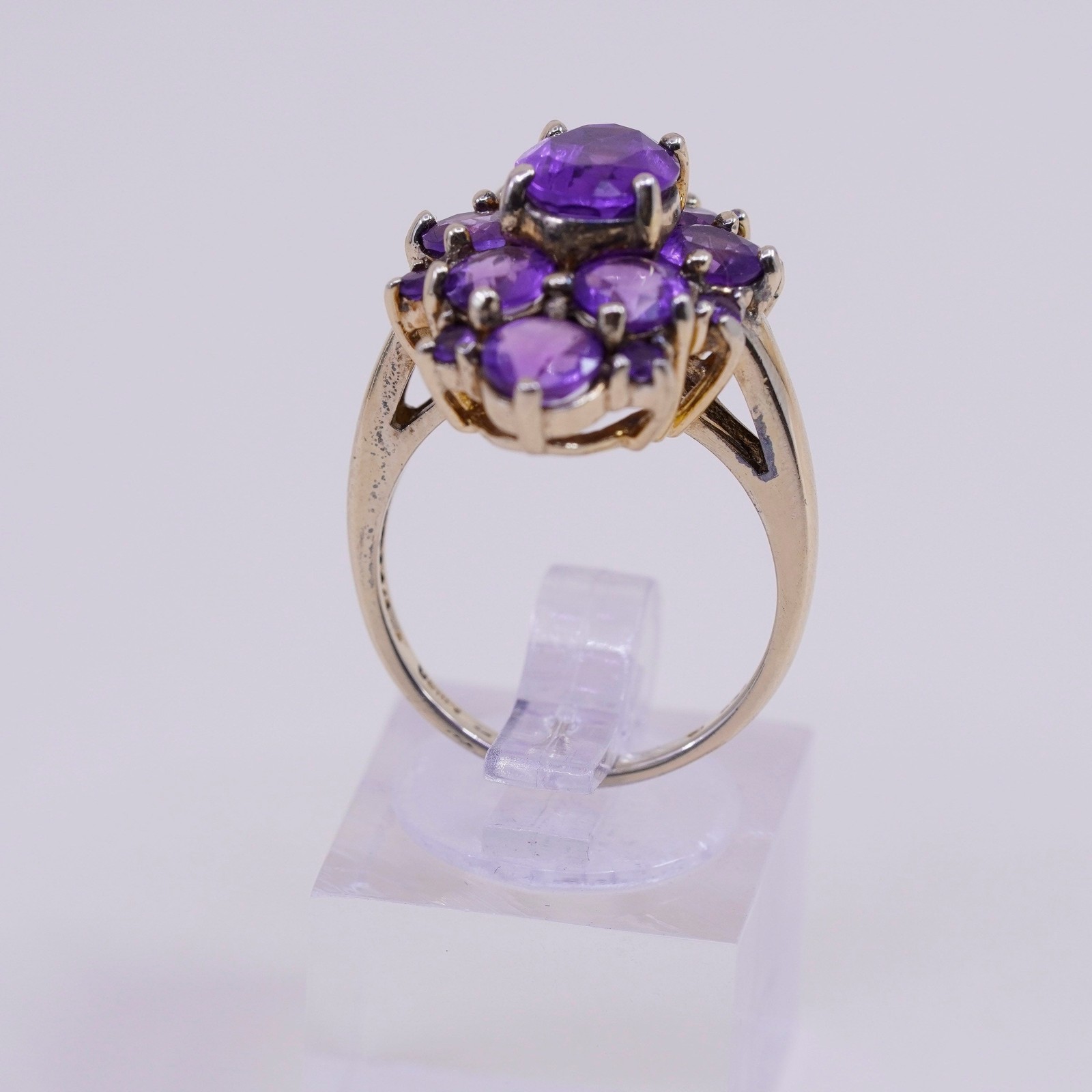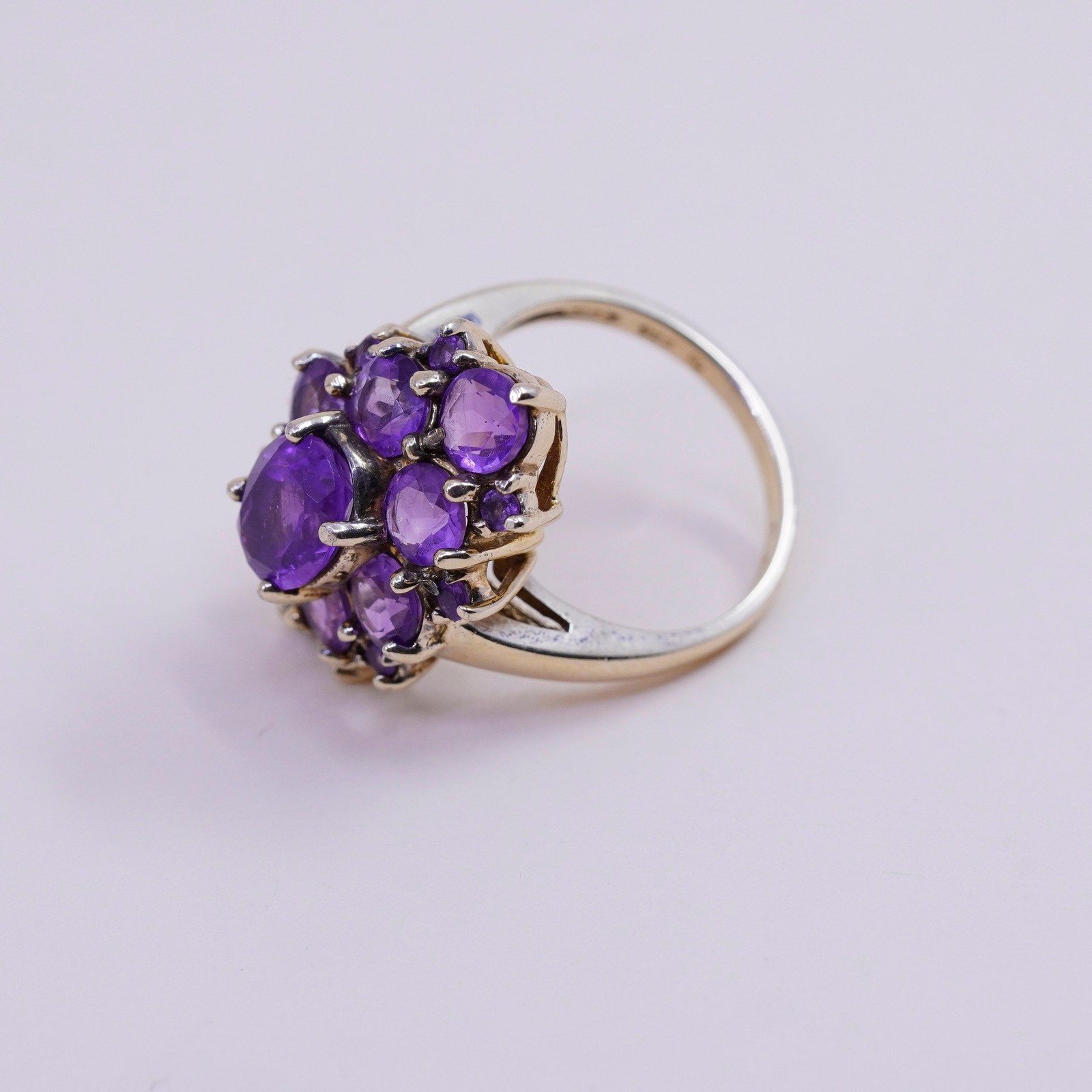 Size 7.25, vtg vermeil gold filled Sterling 925 silver cocktail ring amethyst