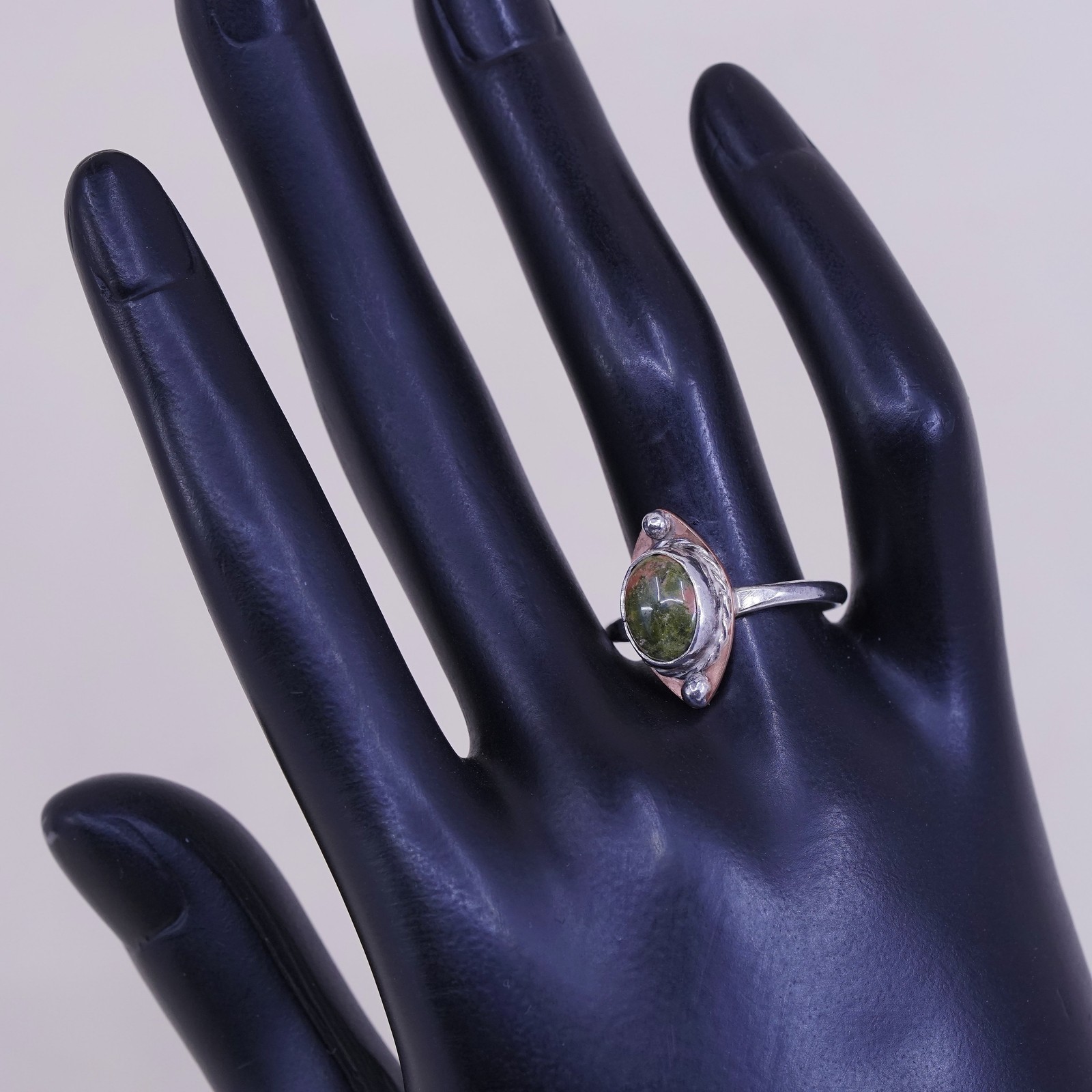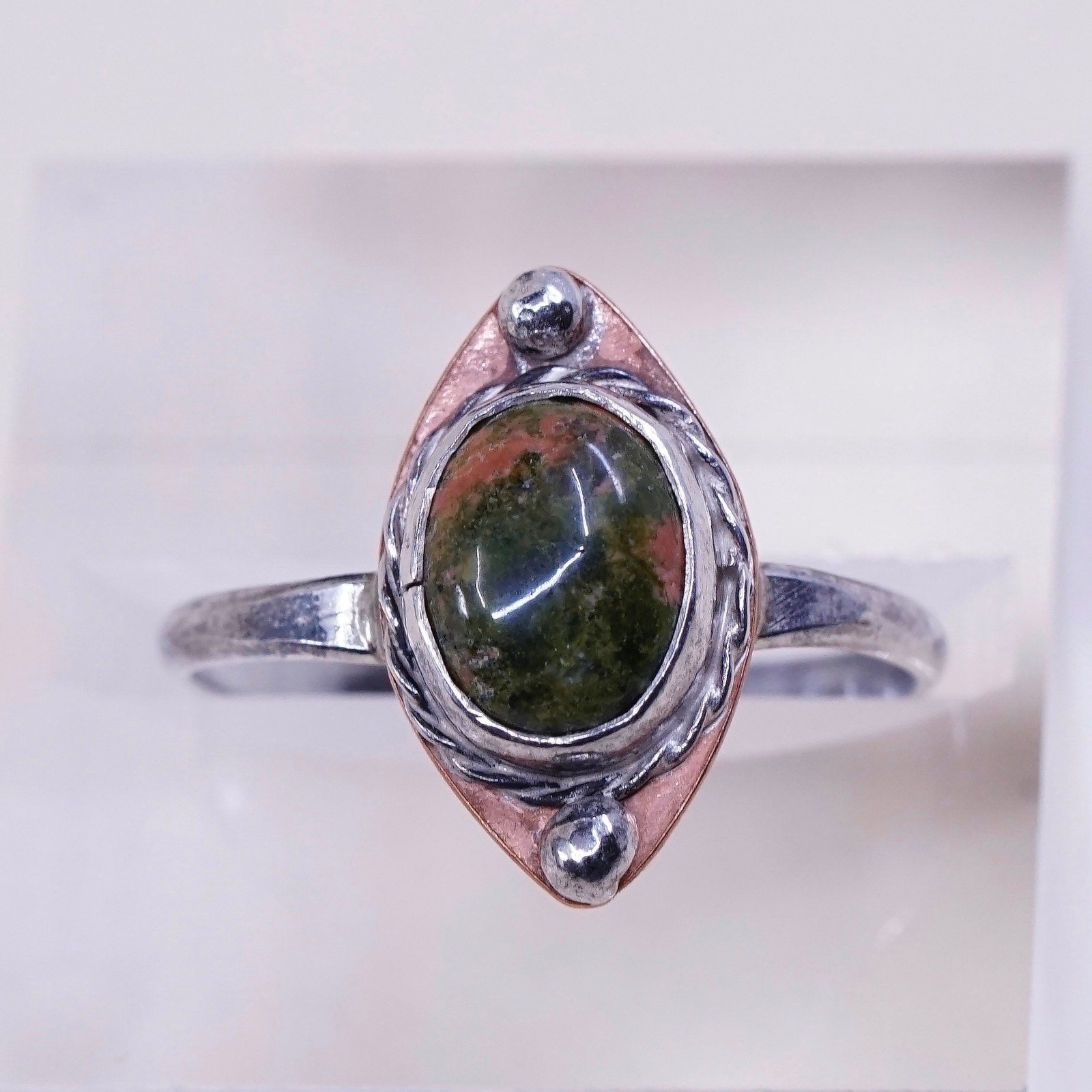 как выглядит Size 9.75, vintage sterling silver handmade ring, 925 with oval jasper фото