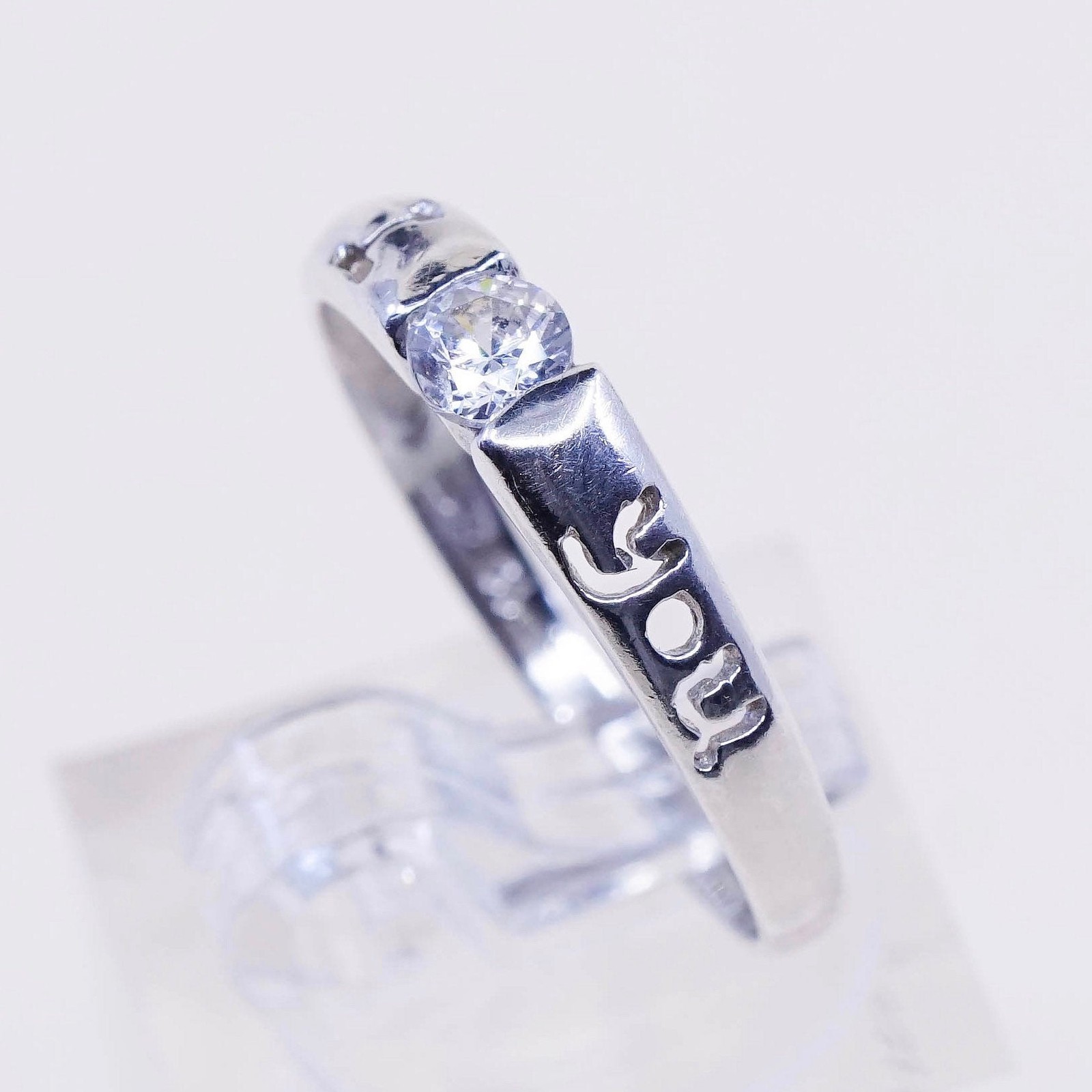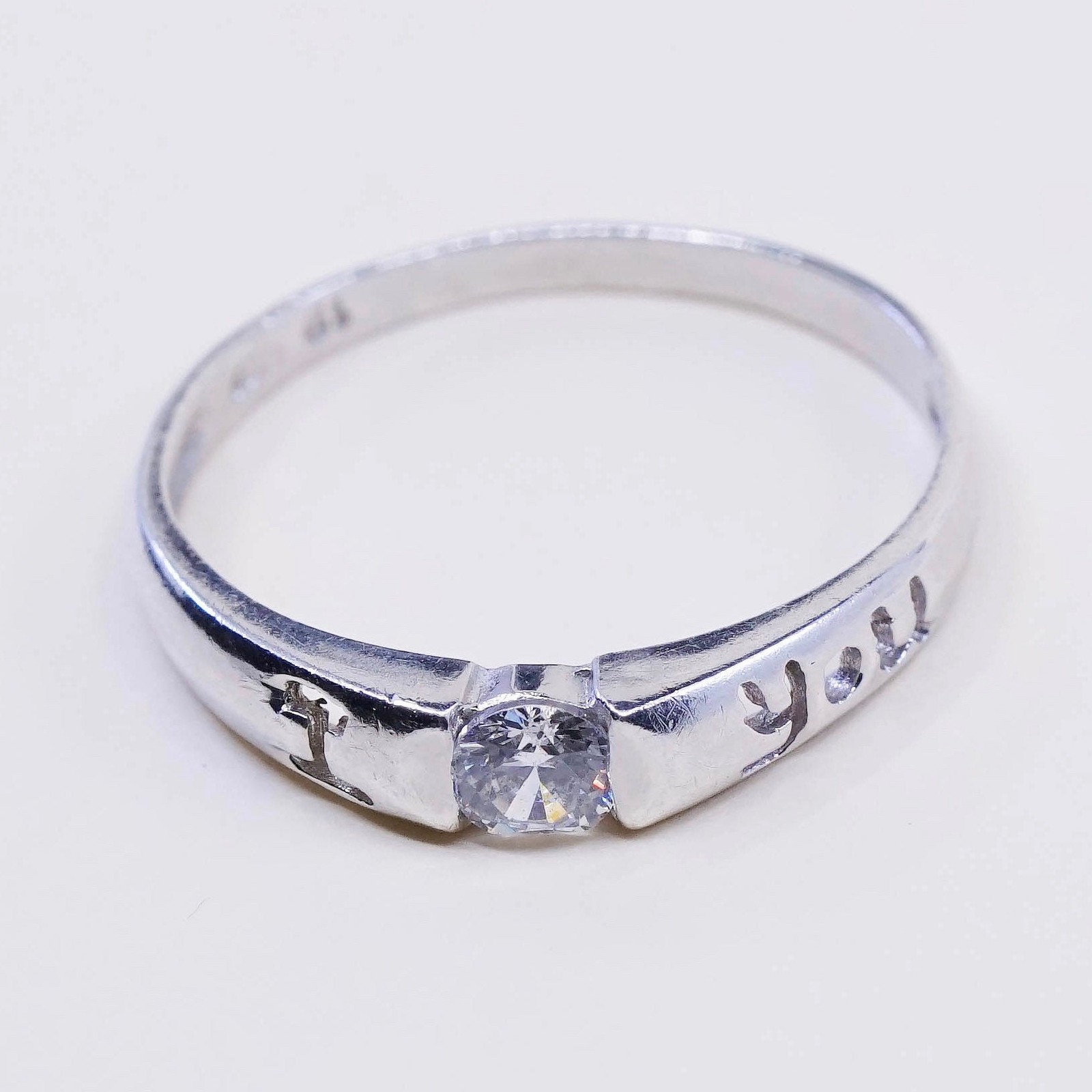 sz 9, vtg sterling silver handmade engagement ring with Cz and I love you