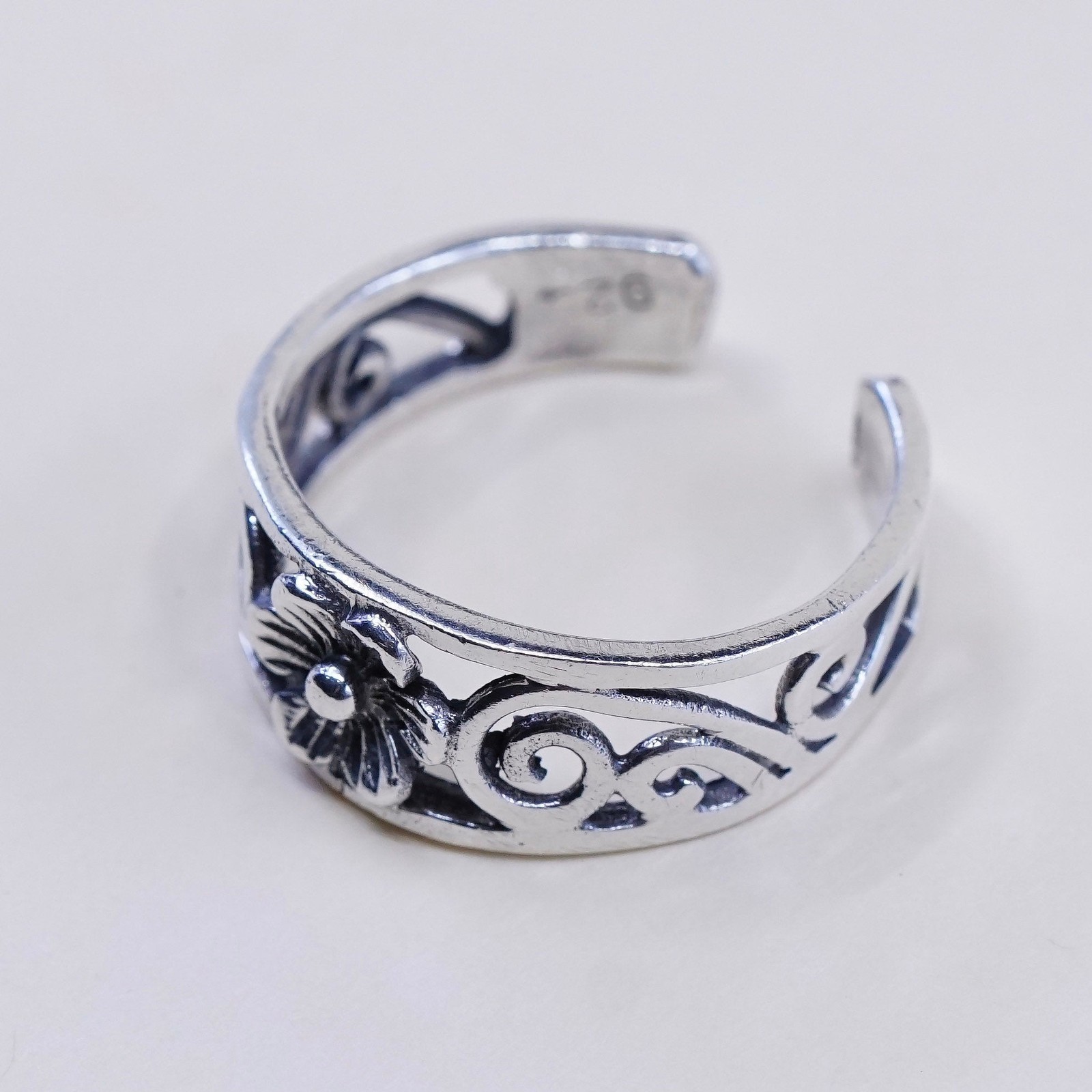 как выглядит Size 5.75, vintage Sterling silver handmade ring, 925 filigree band with flower фото