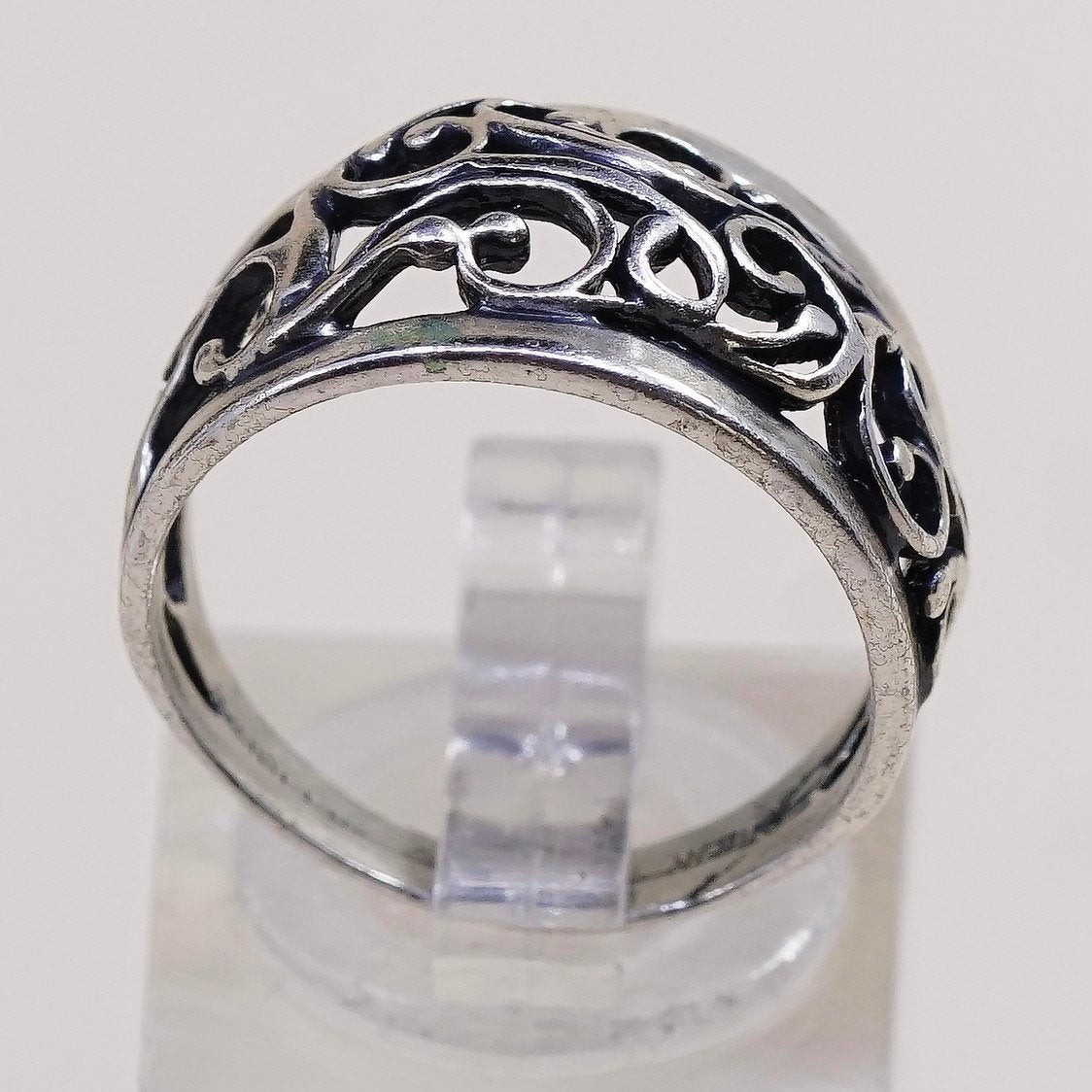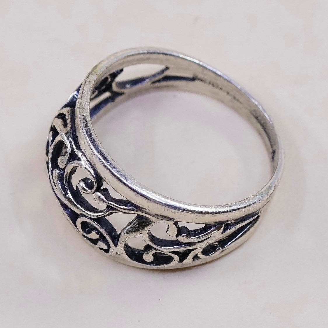sz 7.5, vintage Sterling silver handmade ring, 925 band w/ swirl pattern