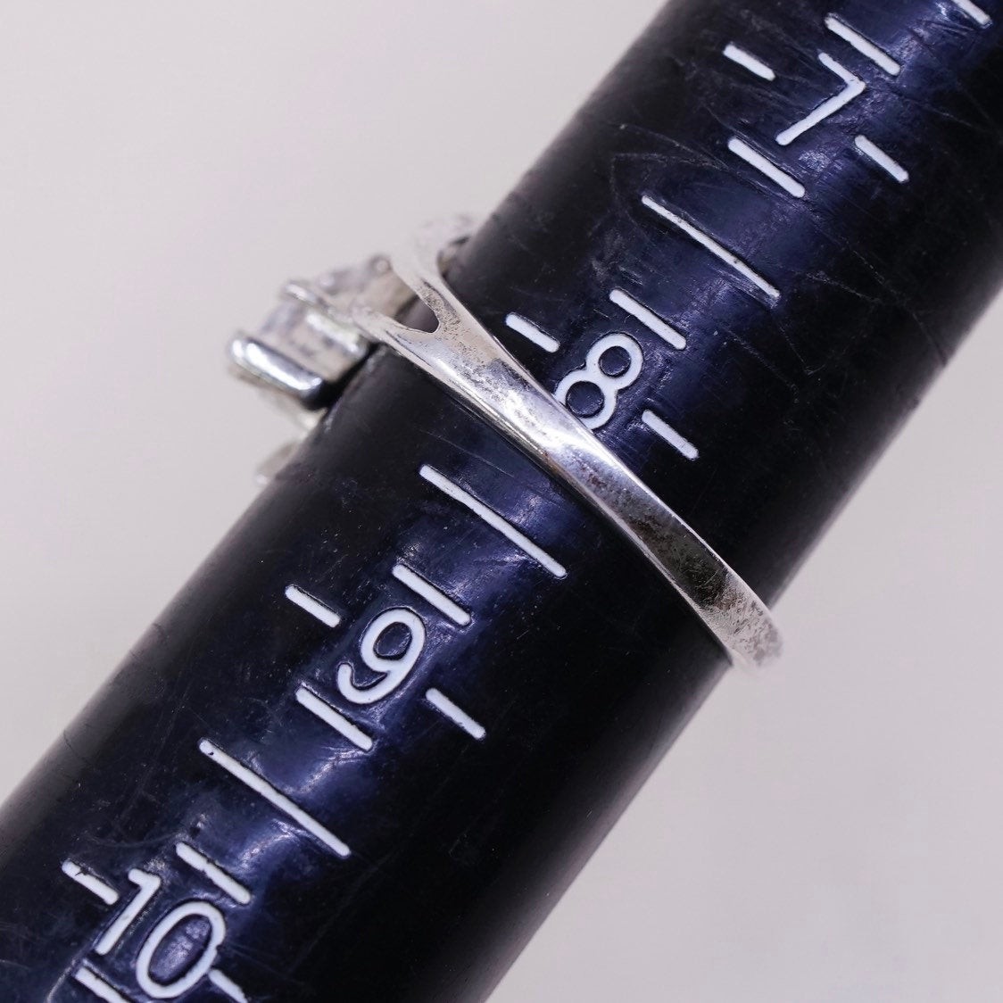 как выглядит sz 8, vtg sterling silver handmade ring, engagement ring w/ Marquise cz фото