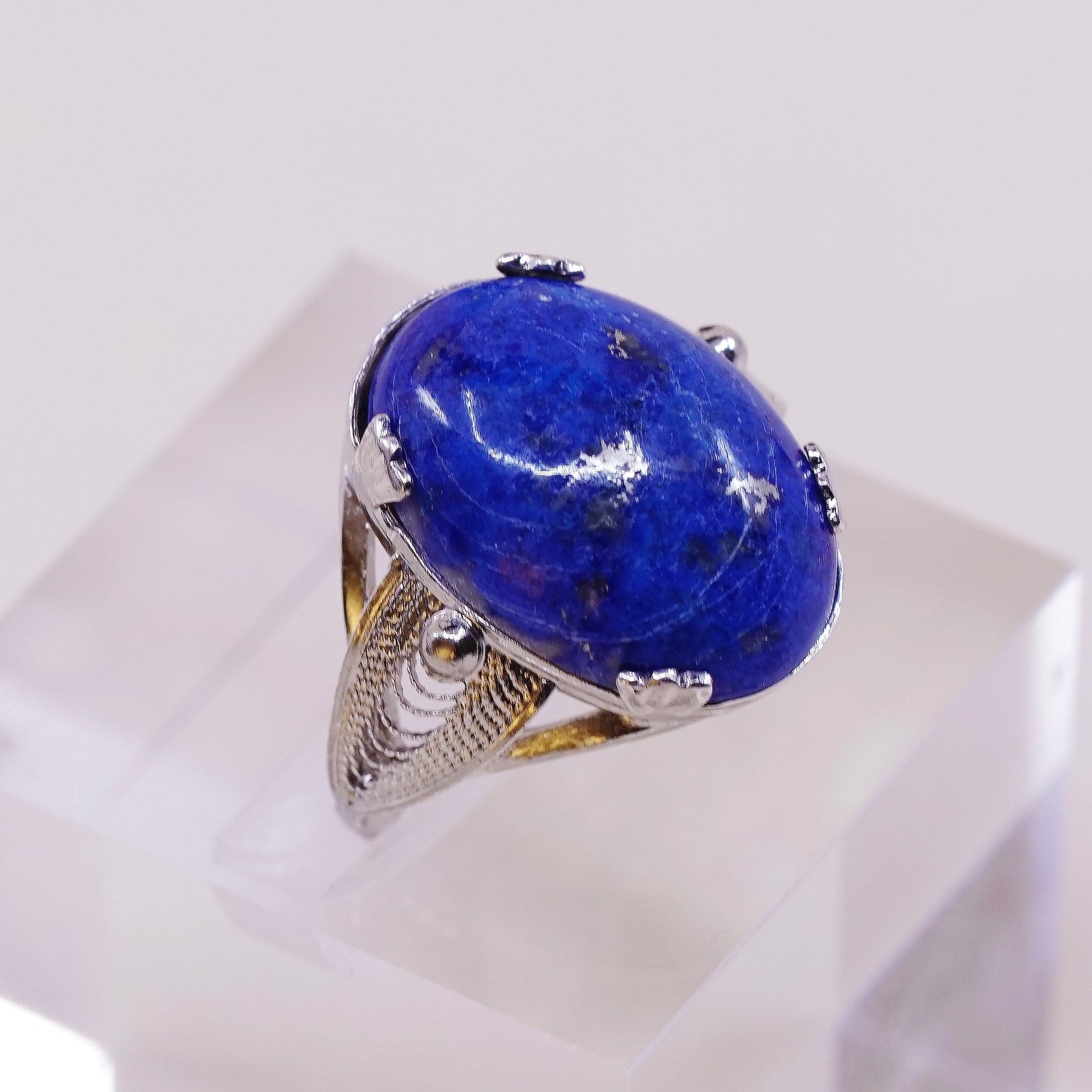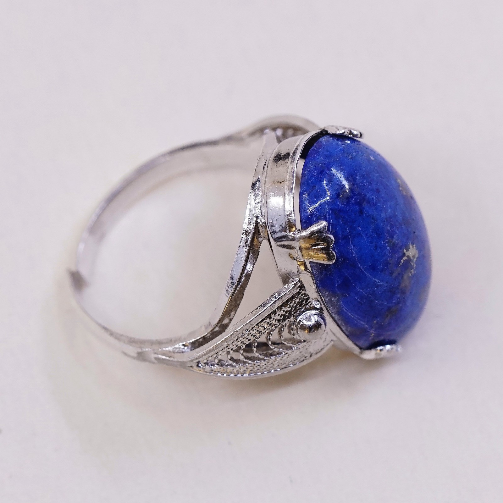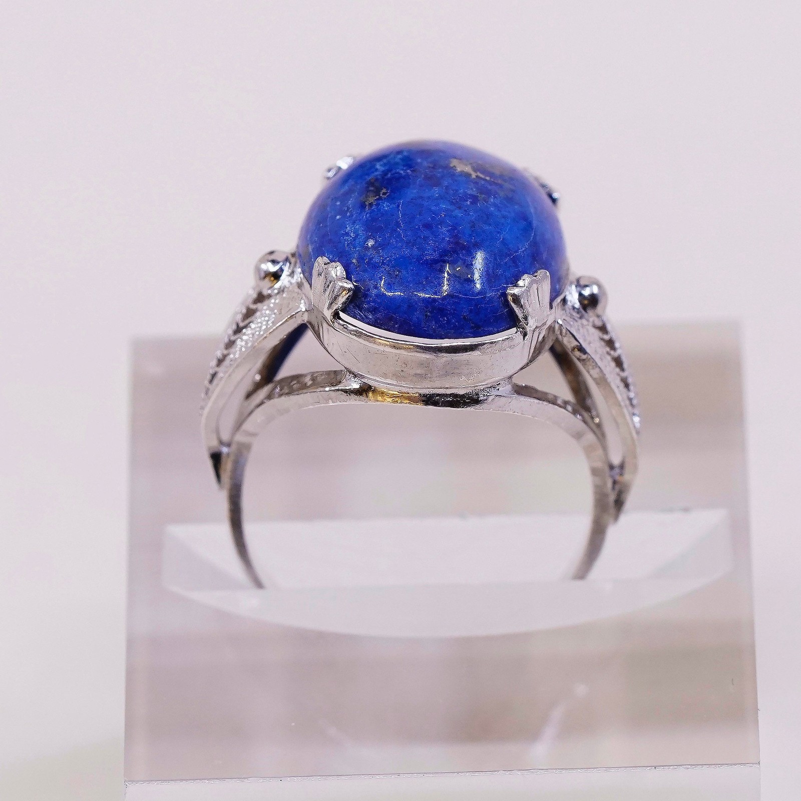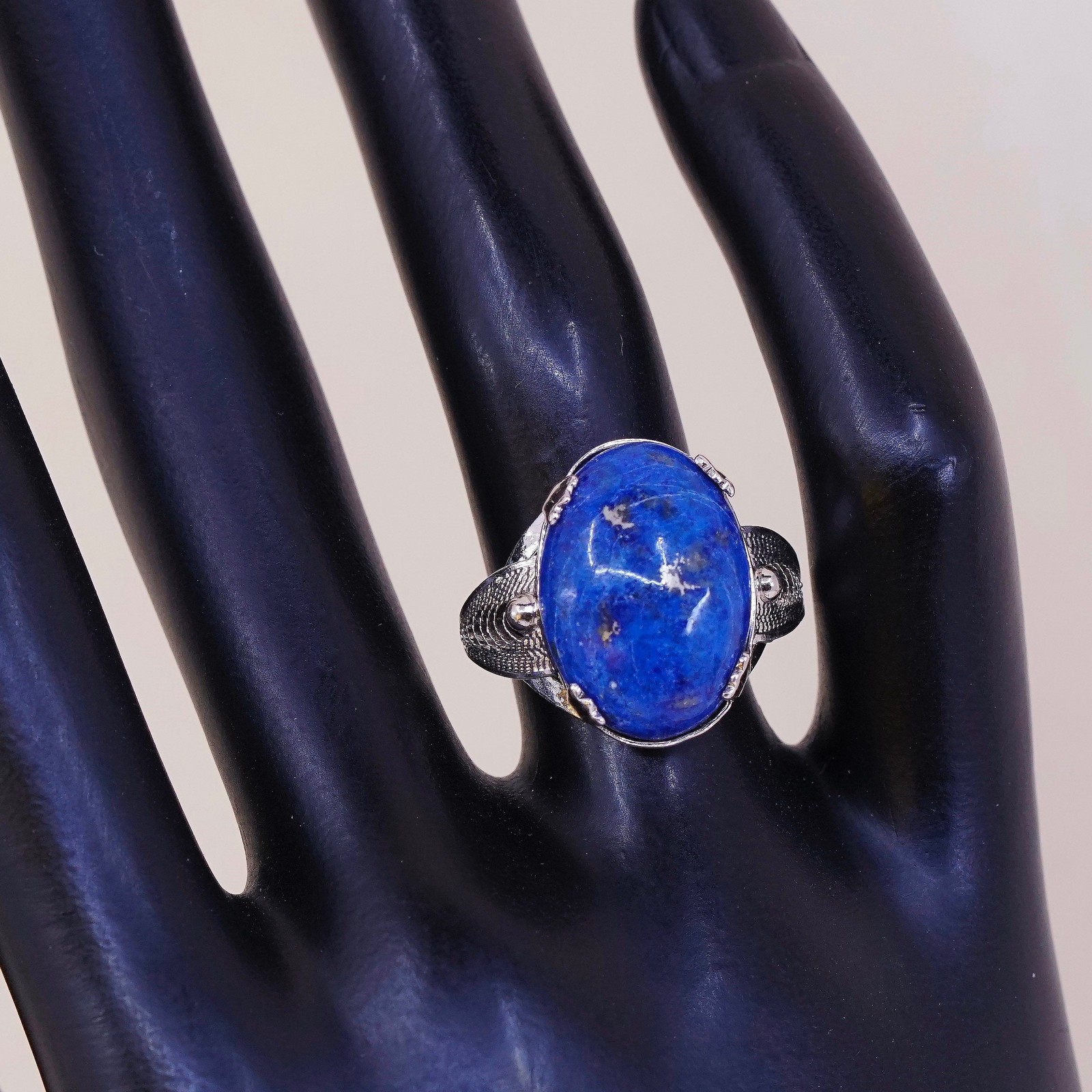 sz 6, vtg sterling silver handmade ring 925 statement ring w/ oval Lapis lazuli