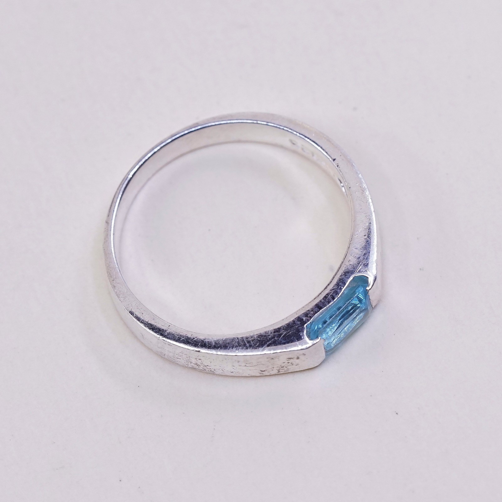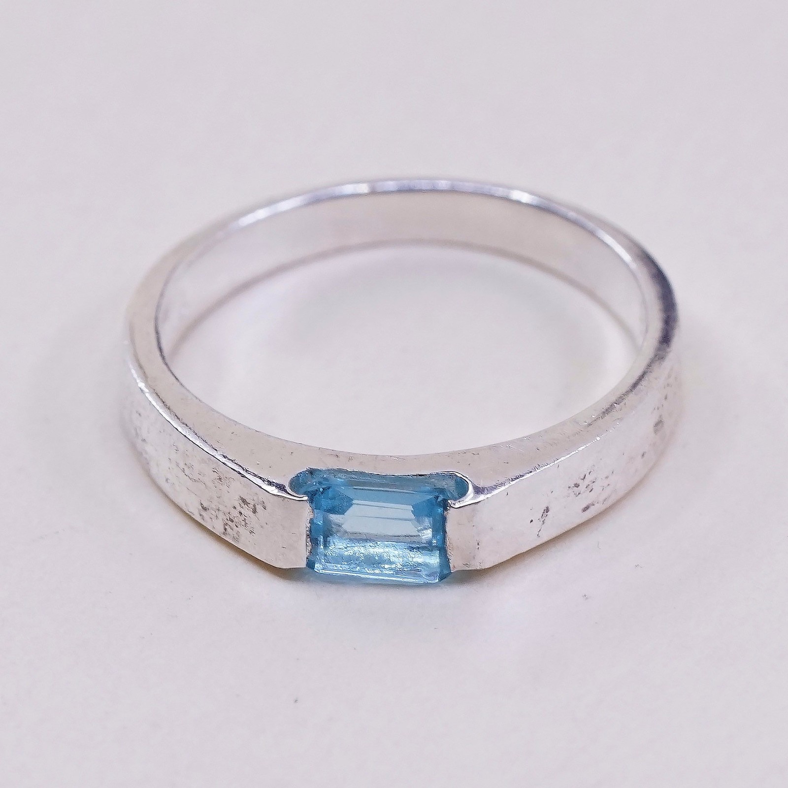 как выглядит sz 7.25, vtg Sterling silver statement ring, 925 stackable band w/ blue topaz фото