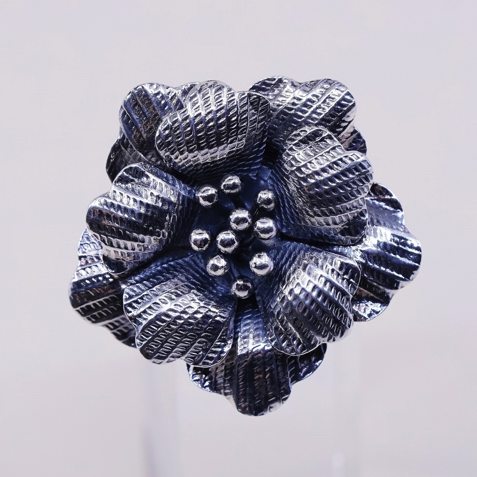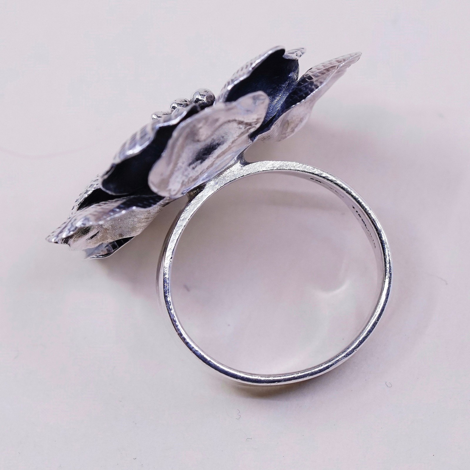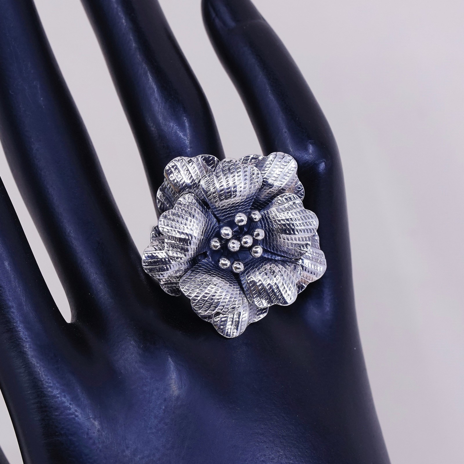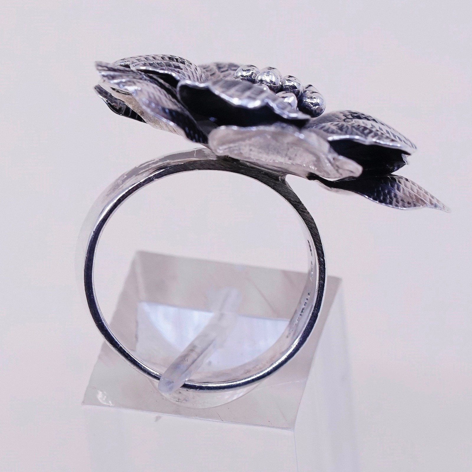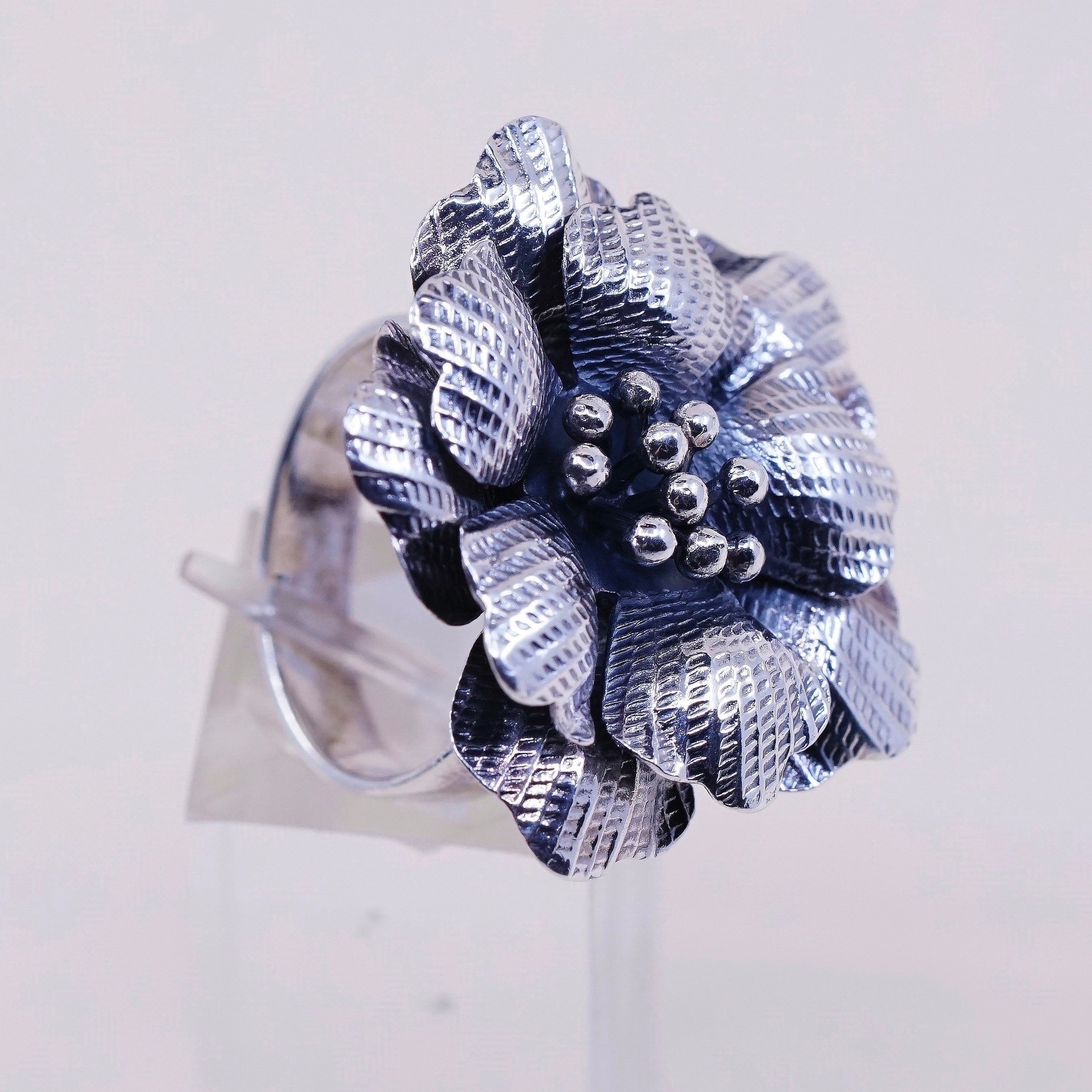 sz 7.5, vtg Sterling silver handmade ring, 925 rose flower statement ring