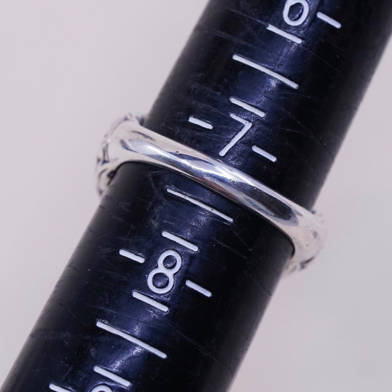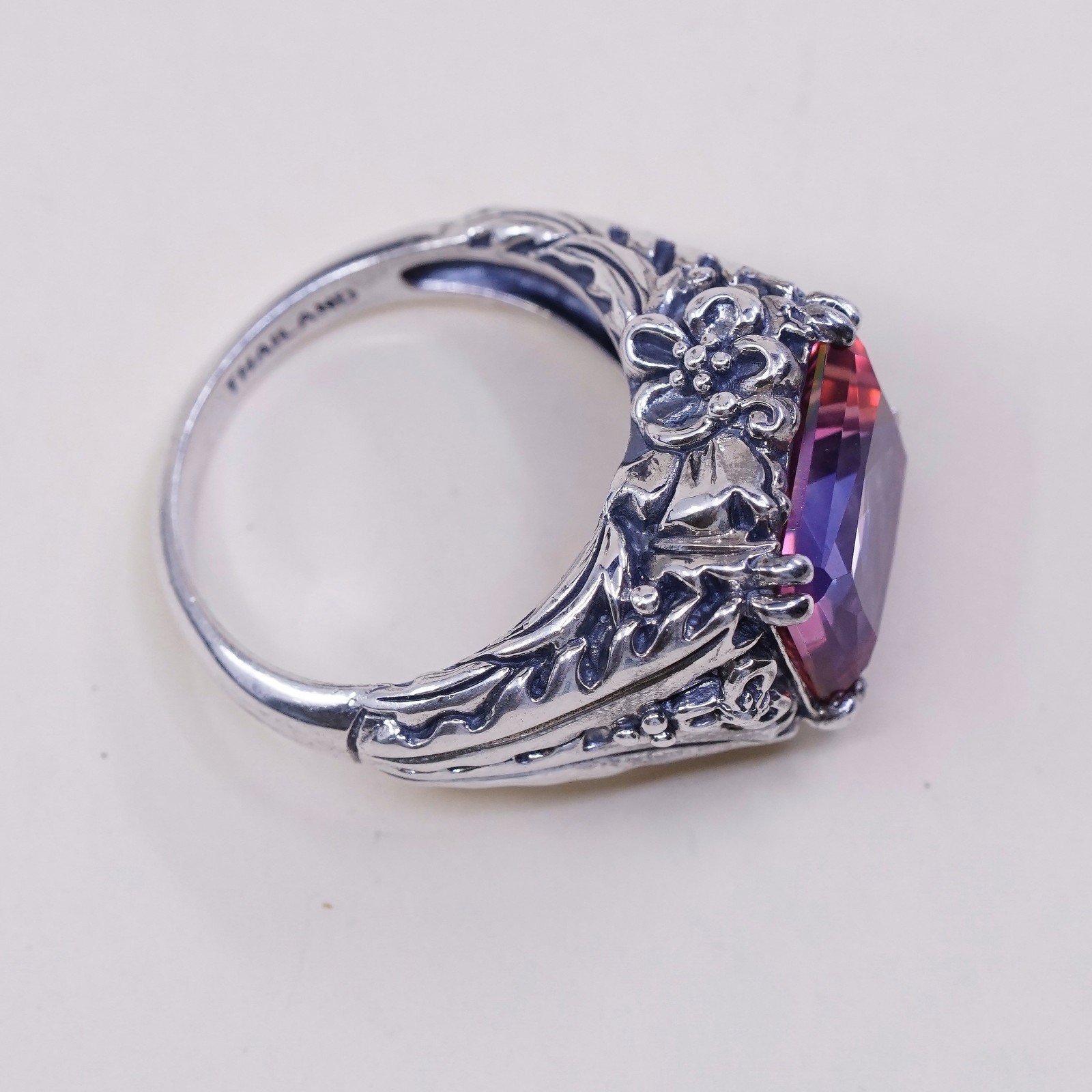 sz 7.25, VTG cocktail Sterling silver handmade ring, 925 crown w/ pink crystal