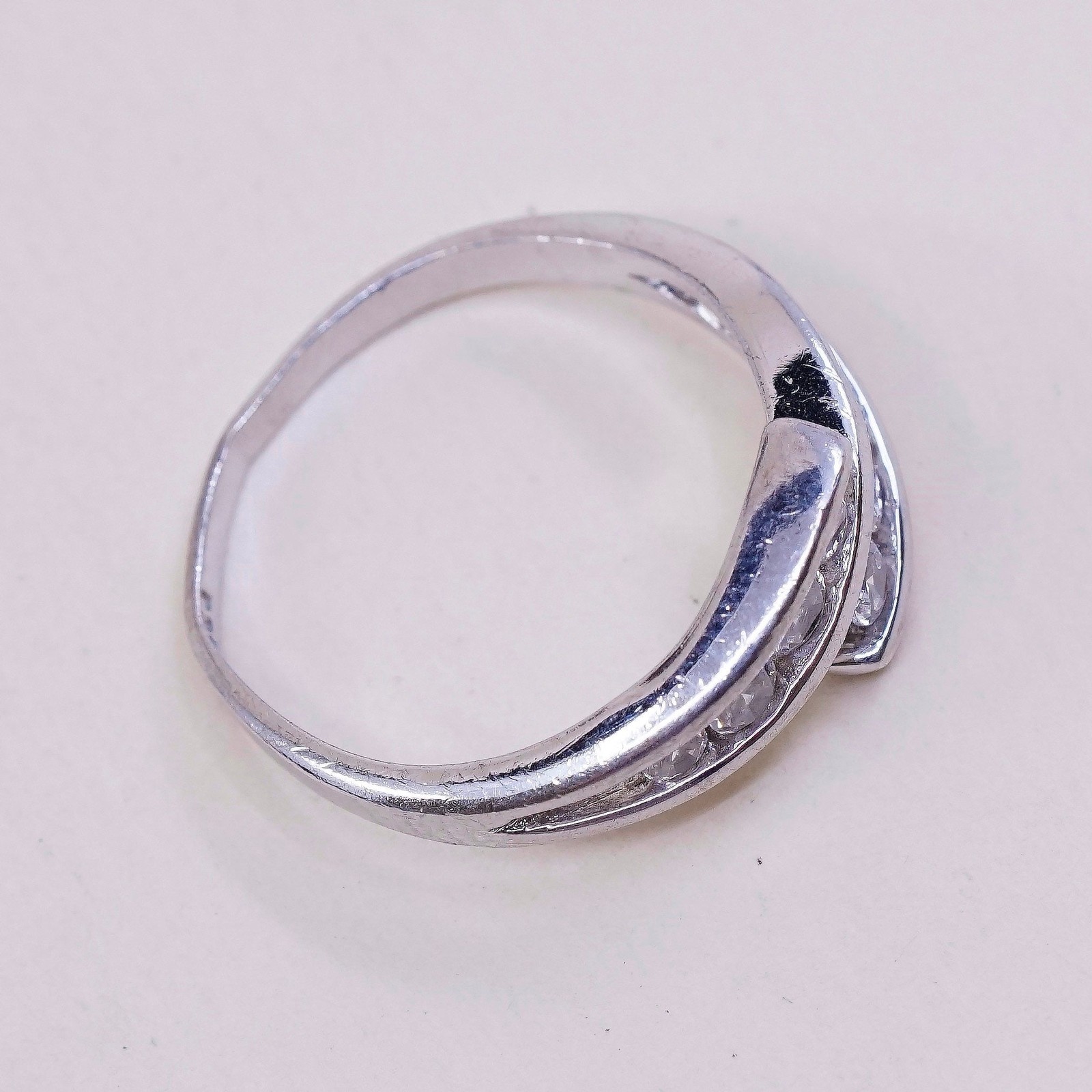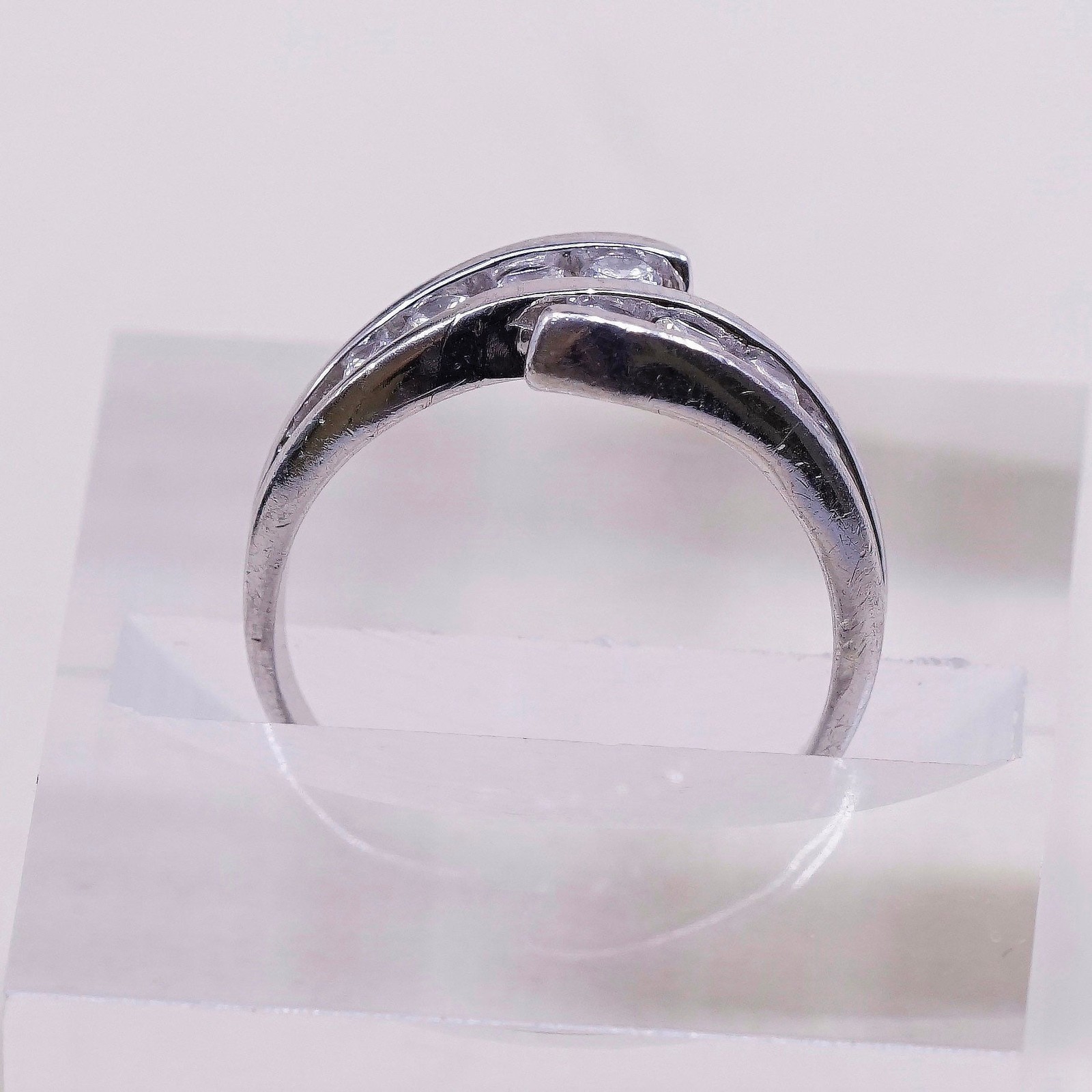 sz 6.25, Vintage sterling silver handmade ring, engagement with cz