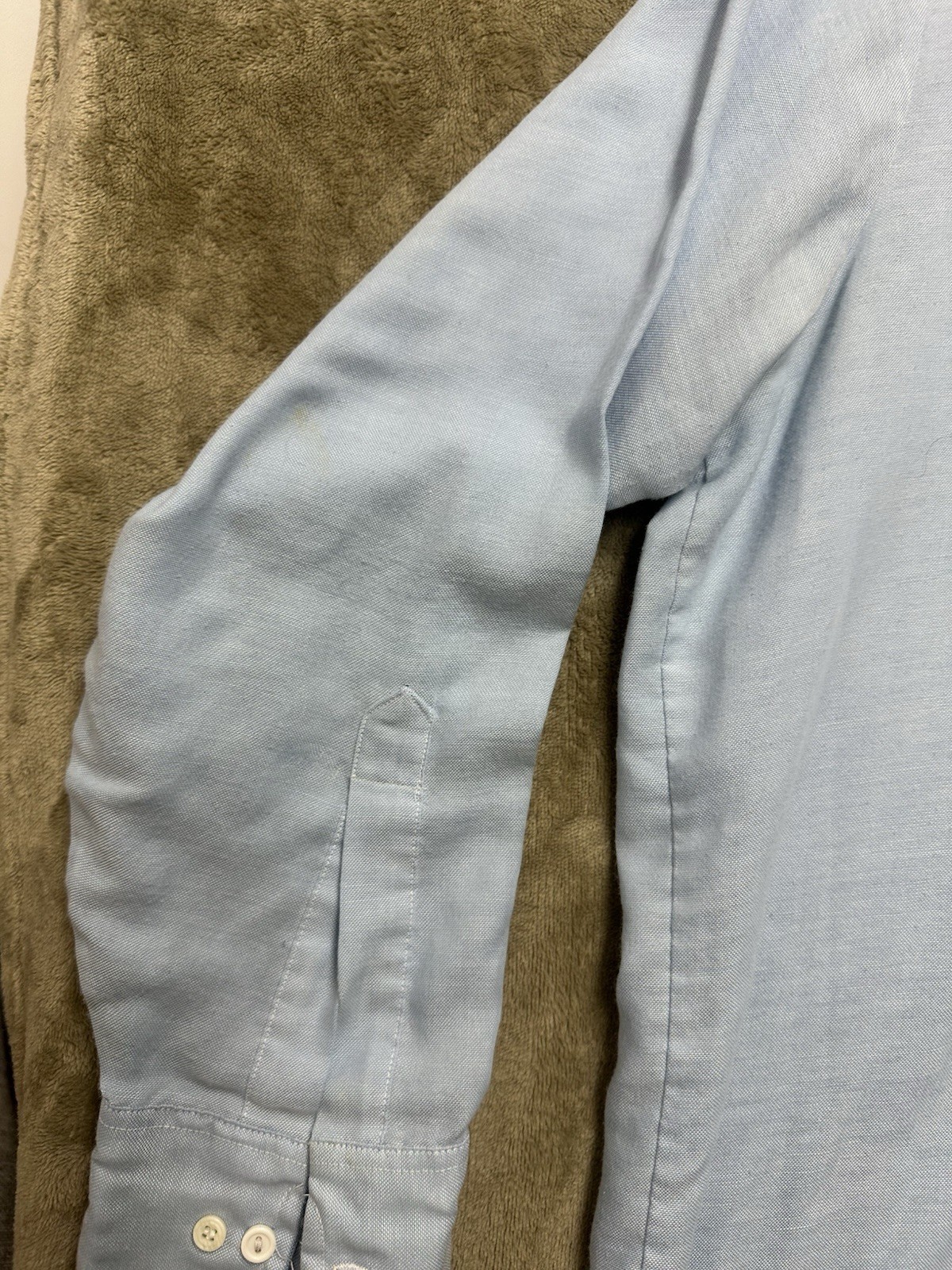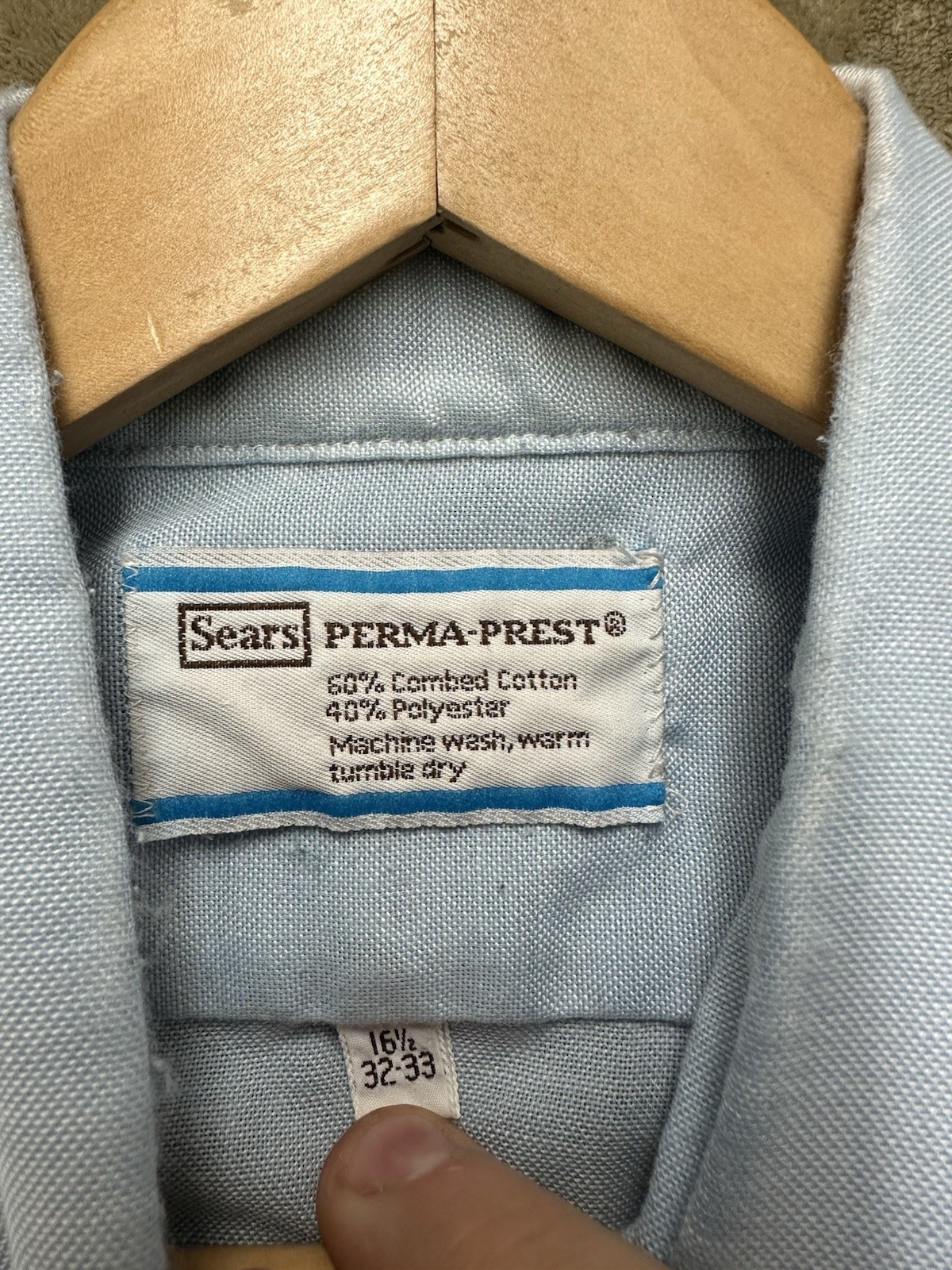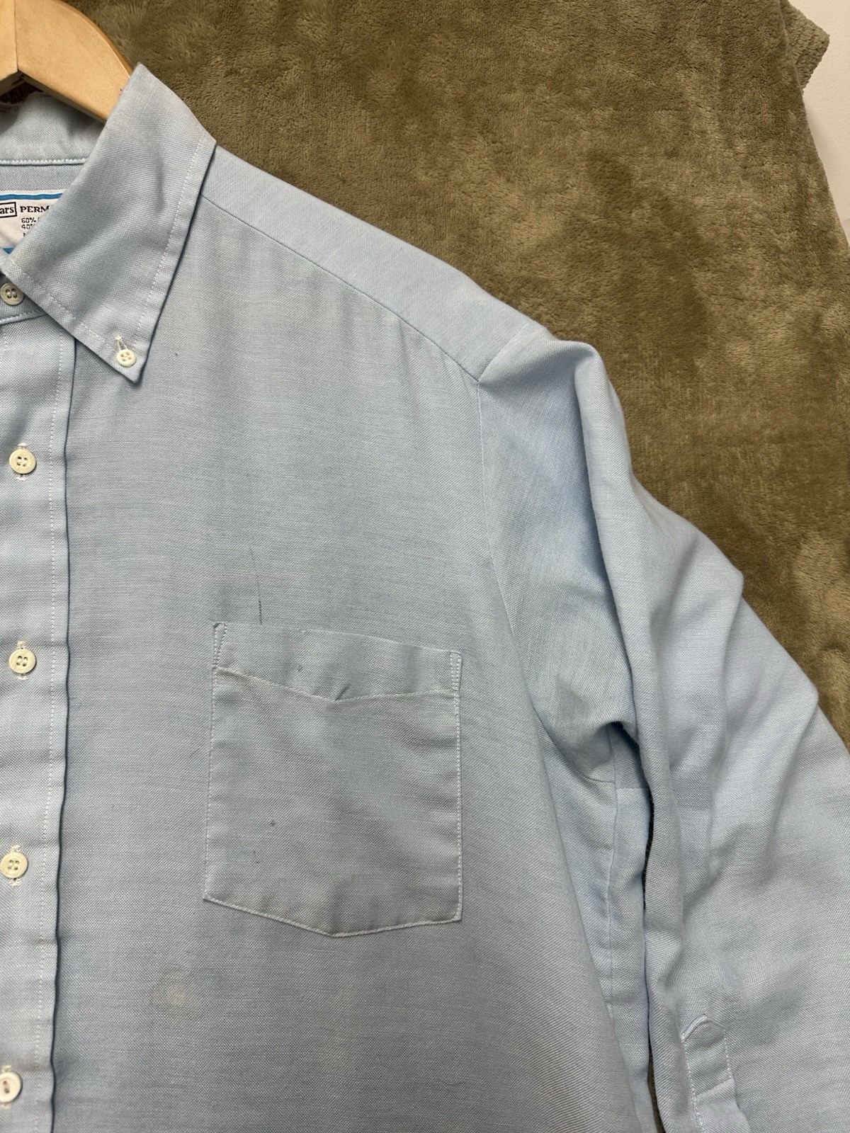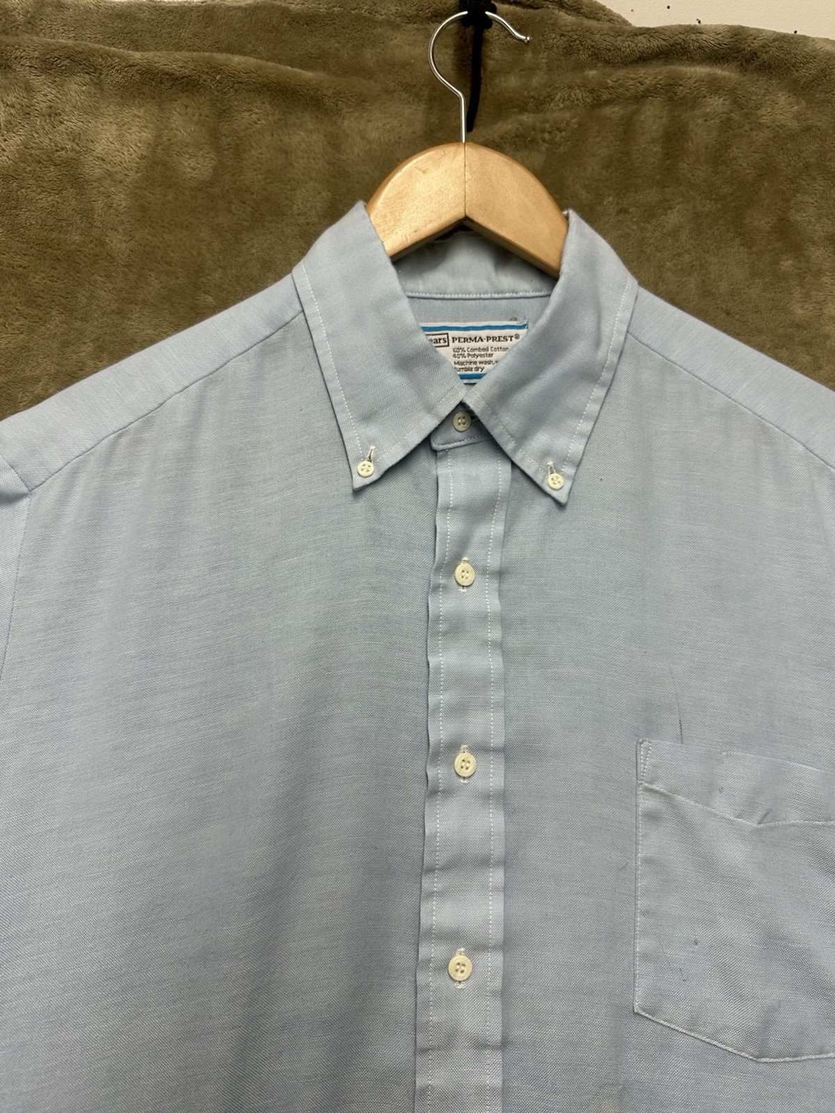 как выглядит Vintage 1970s Sears Perma-Prest Light Blue Knit Shirt 16.5 32-33 work shirt фото