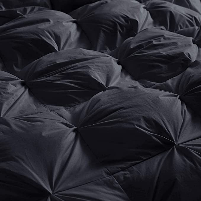Goose Down Feather 3D Pleated Comforter Cotton Black Oversize King 120 x 120