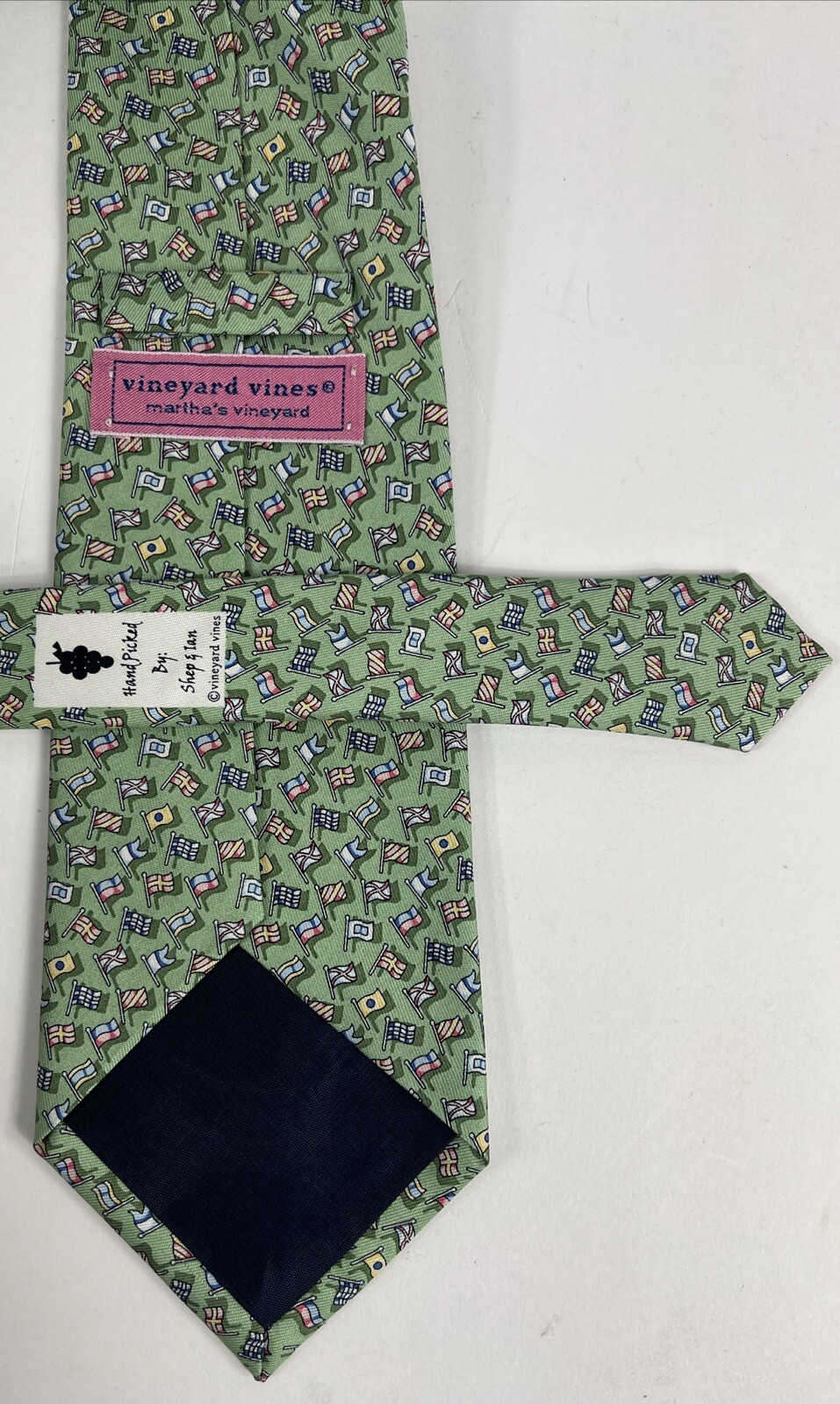 Vineyard Vines Martha s Vineyard Flags Design Green Silk Tie 58x3.75