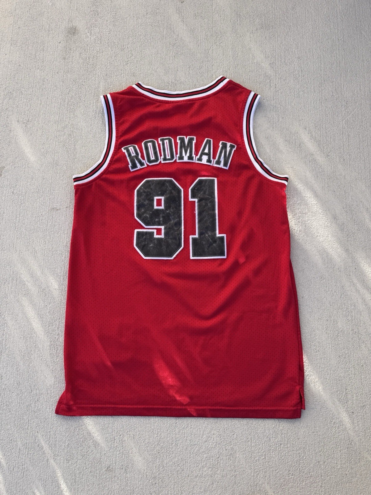 • 100 Authentic Dennis Rodman Chicago Bulls Road Red Swingman Jersey Throwback