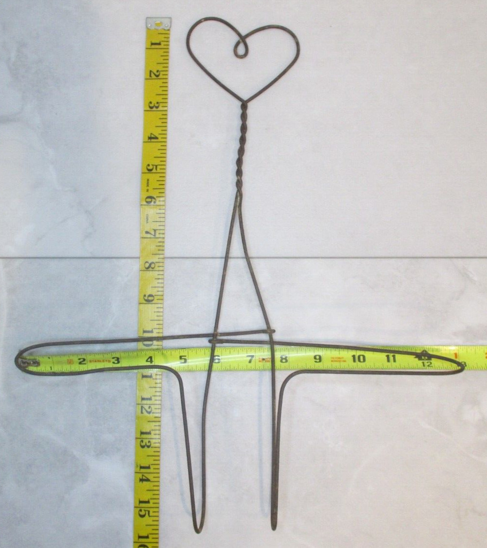 Antique Folk Art Wire Hanger Hand-Forged Heart Motif Primitive Wall Decor
