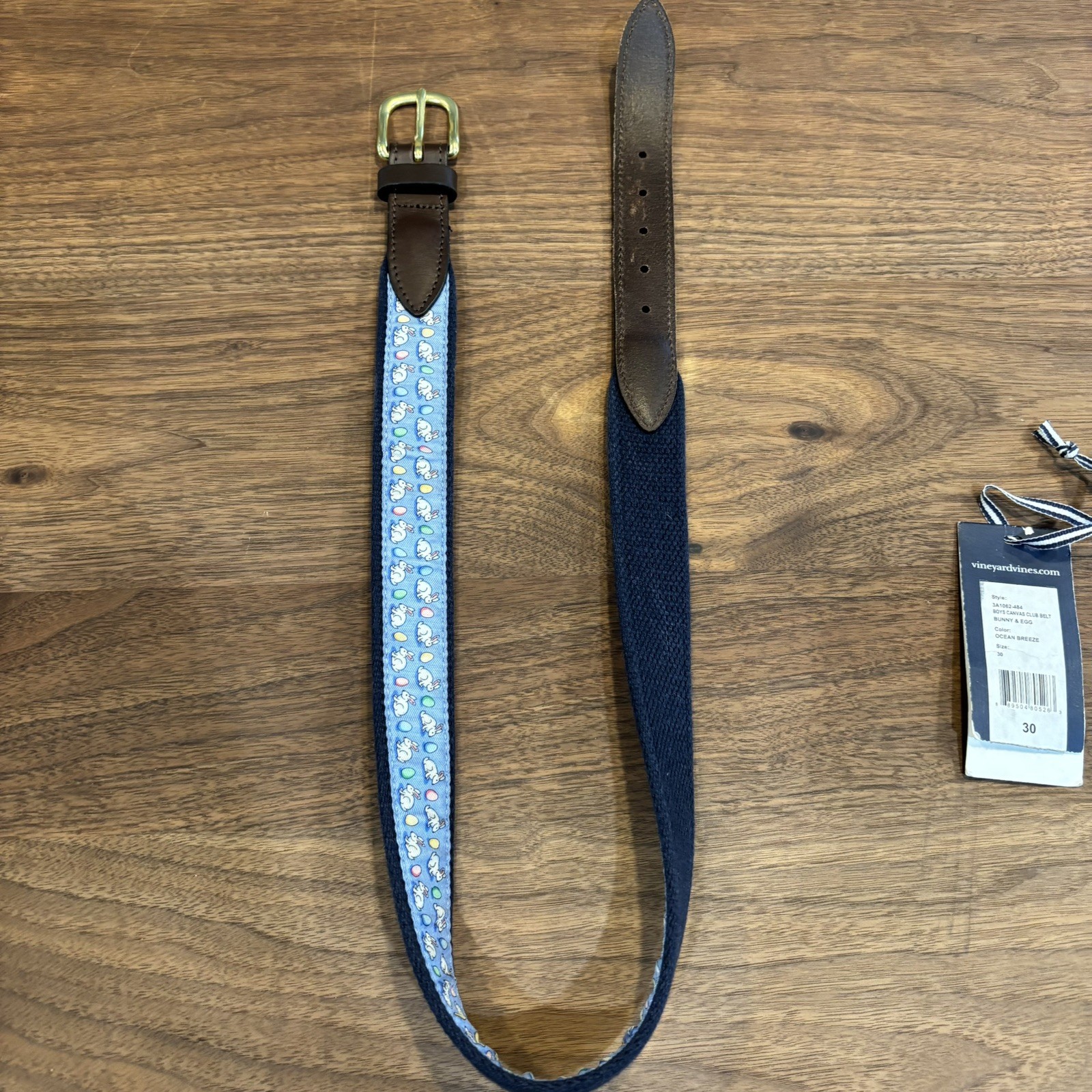 как выглядит Vineyard Vines Boys Canvas Club Belt Easter Bunny Egg Ocean Breeze Blue Size 30 фото