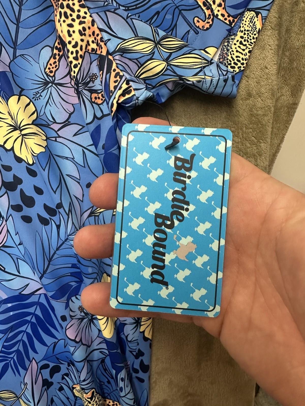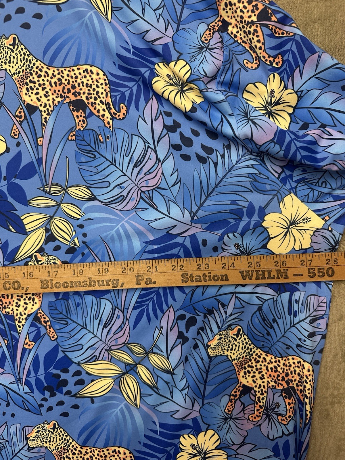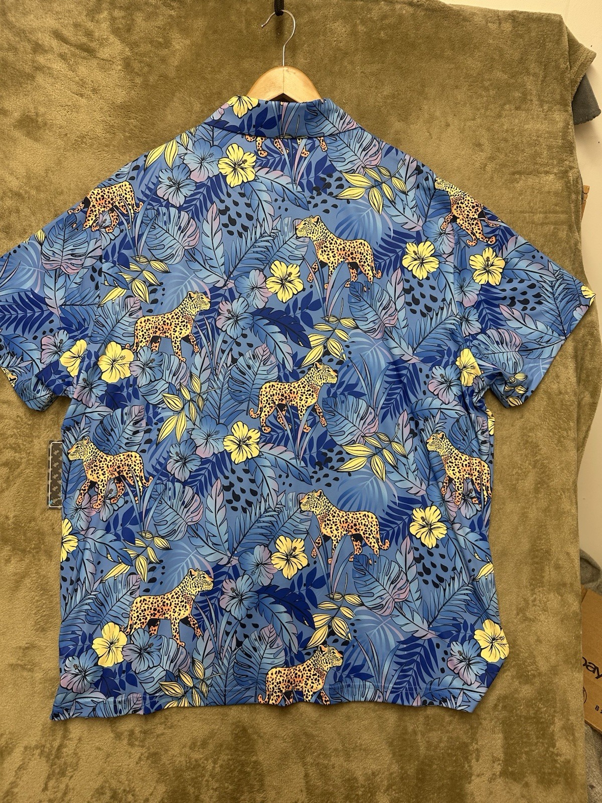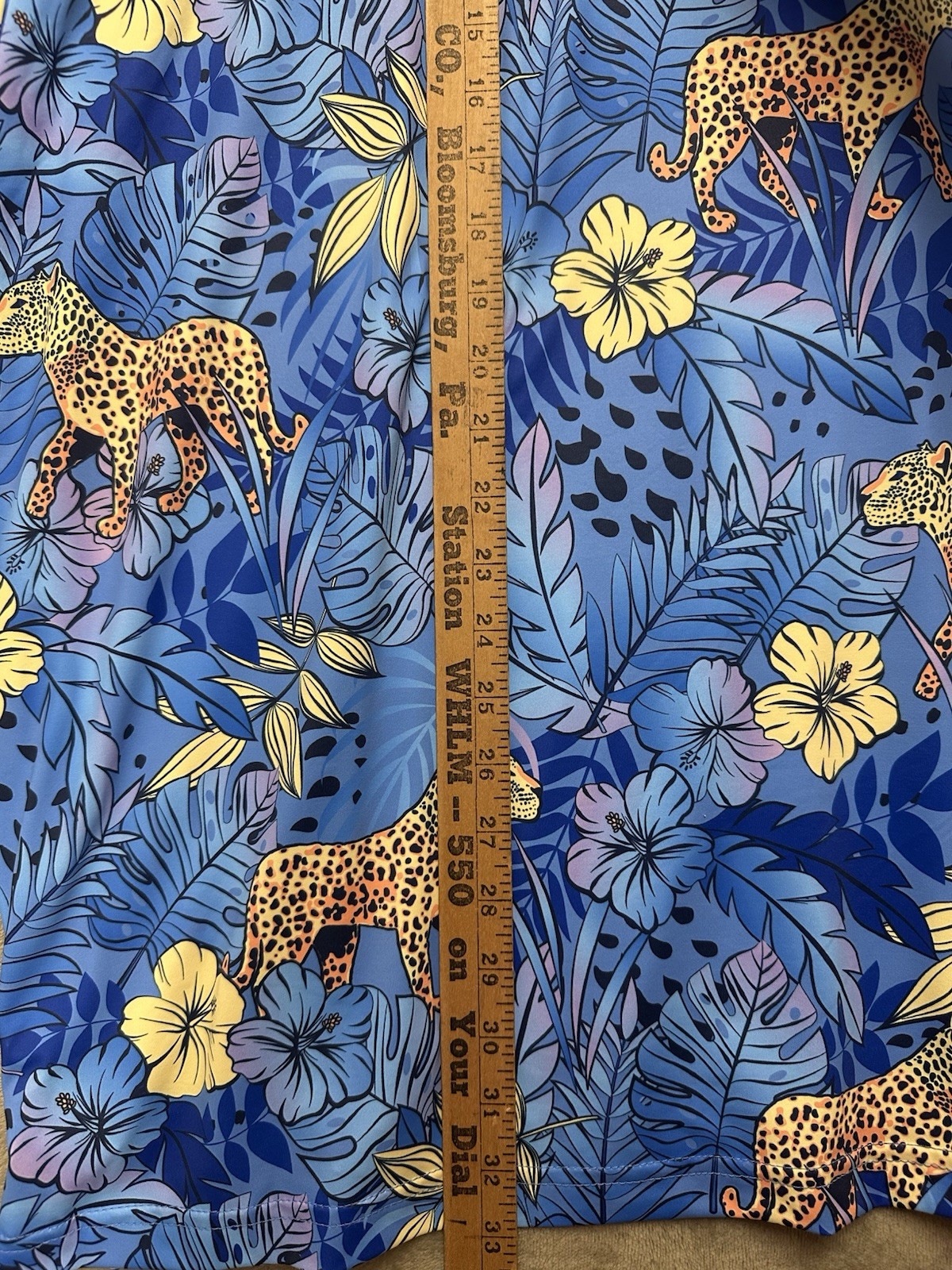 как выглядит Birdie Bound Mens Jungle Leopard Azure Blue Printed Golf Polo Shirt Size 3XL фото