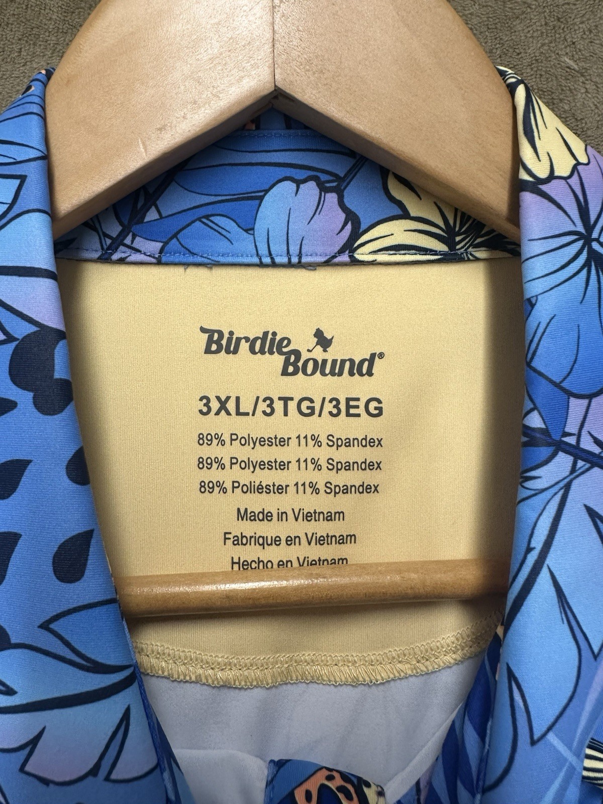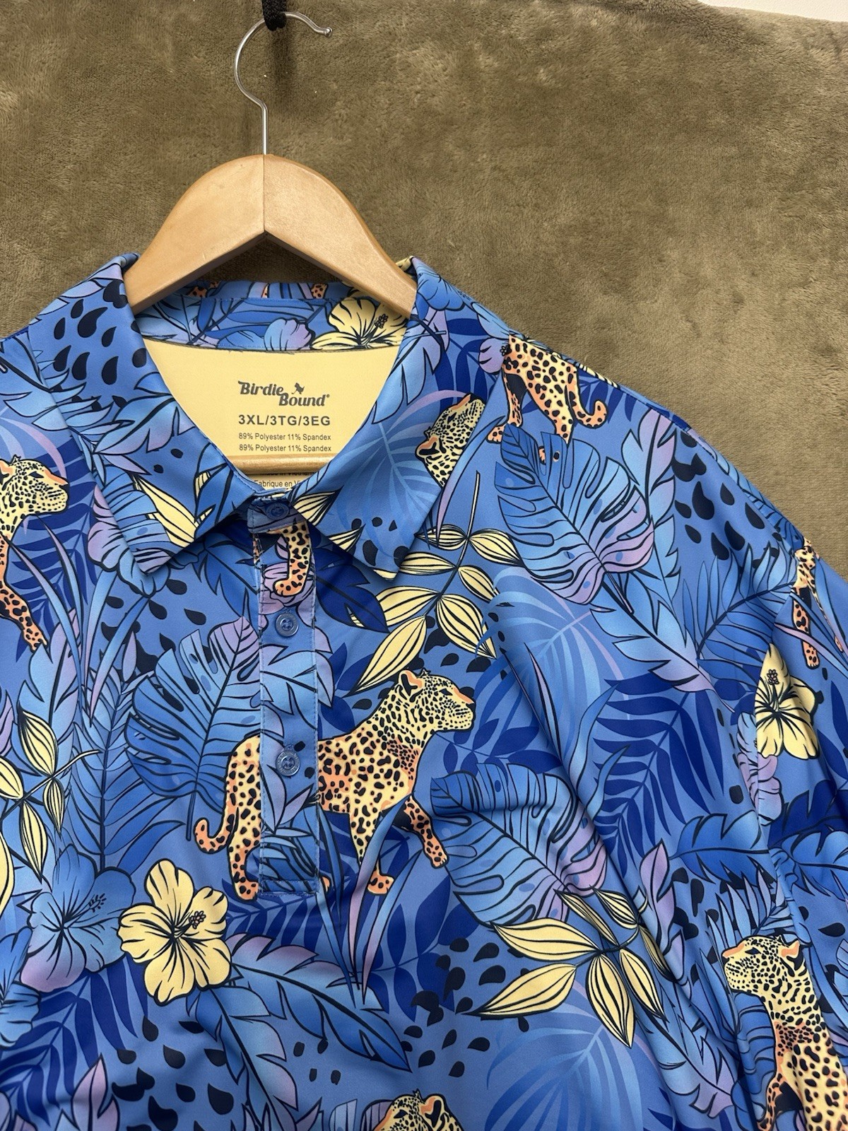 Birdie Bound Mens Jungle Leopard Azure Blue Printed Golf Polo Shirt Size 3XL