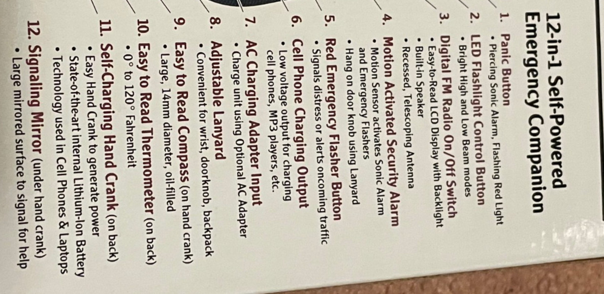 Особенности: Water-Resistant, 12-in-1 Self-Powered, charges cell phone