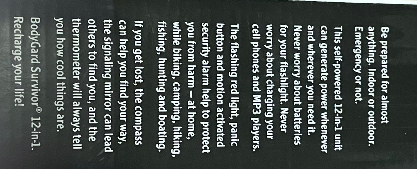 как выглядит BodyGard Platinum Series Survivor 12-in-1 Self-Powered Emergency Companion - NEW фото